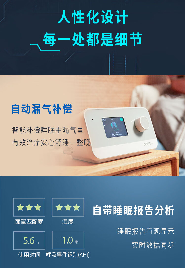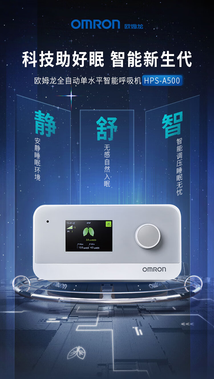 欧姆龙(OMRON)单水平全自动睡眠呼吸机HPS-A500无创家用医用持续正压通气呼吸器止鼾打呼噜呼吸暂停 自营