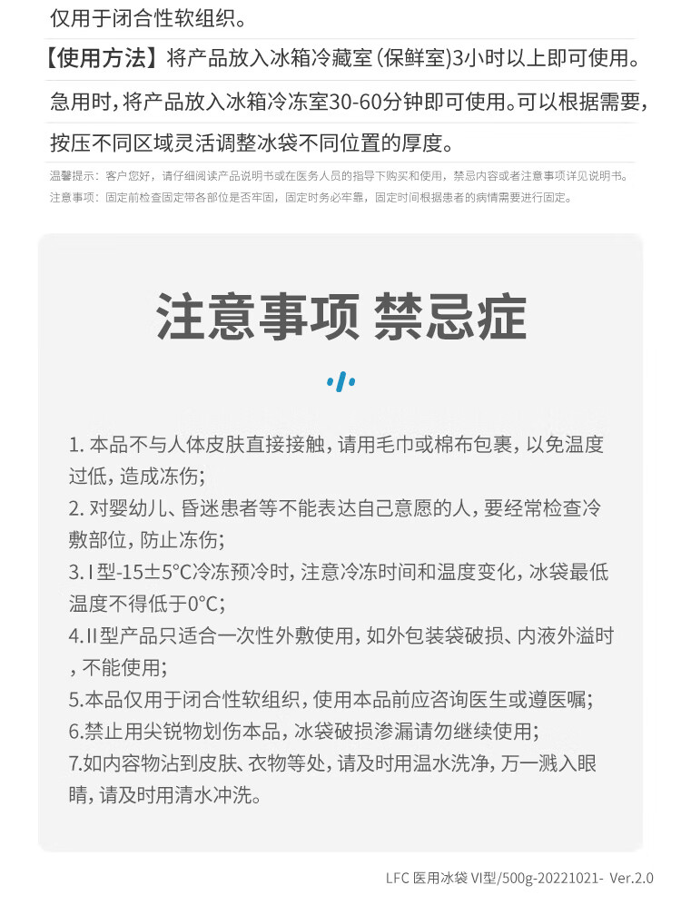 莱弗凯LFCare 医用冰袋四肢可绑型 可循环反复使用 运动扭伤冷敷冰袋物理降温理疗 拔牙膝盖非一次性500克 自营