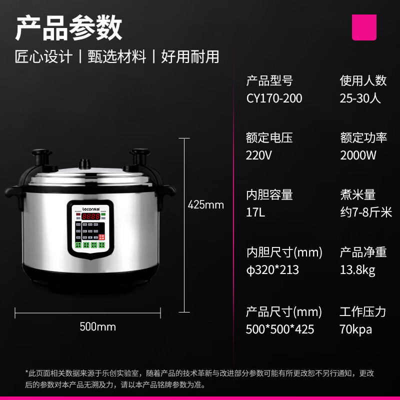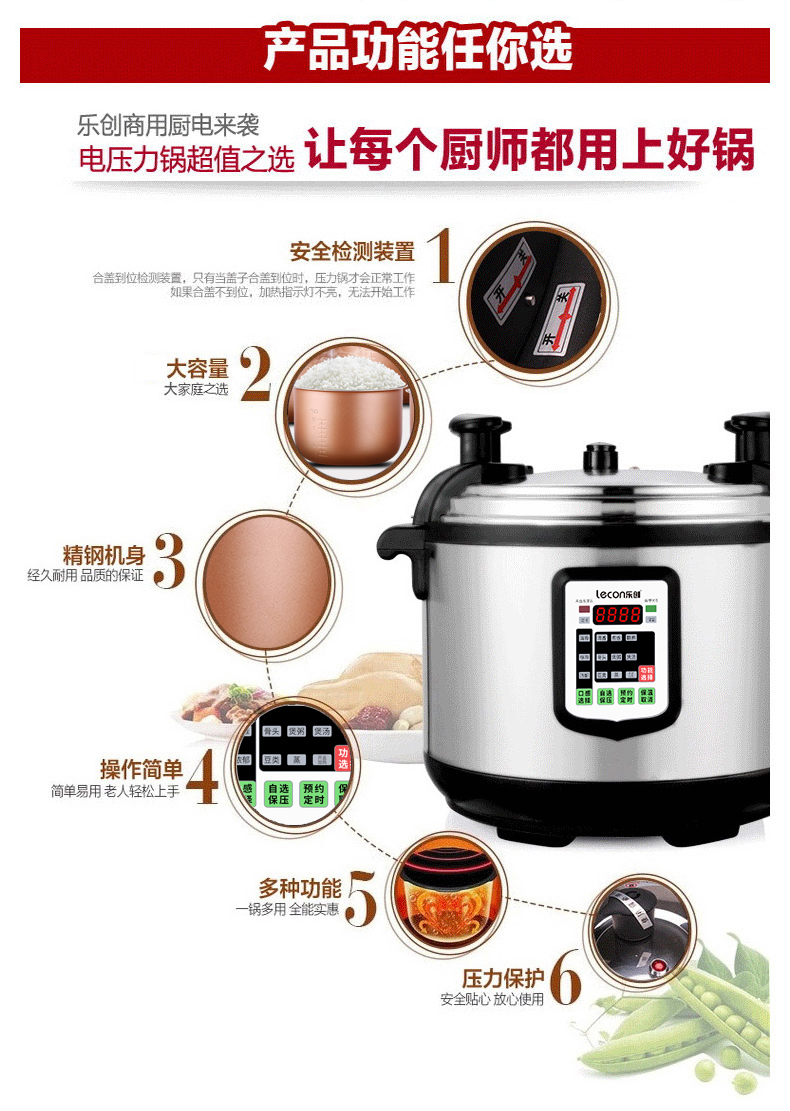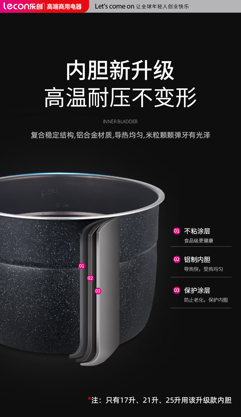 乐创 lecon商用电压力锅 电饭锅商用大容量特大号17L升食堂饭店高压电饭煲25-30人适用 自营