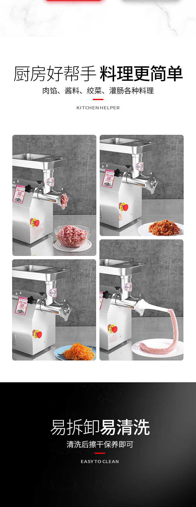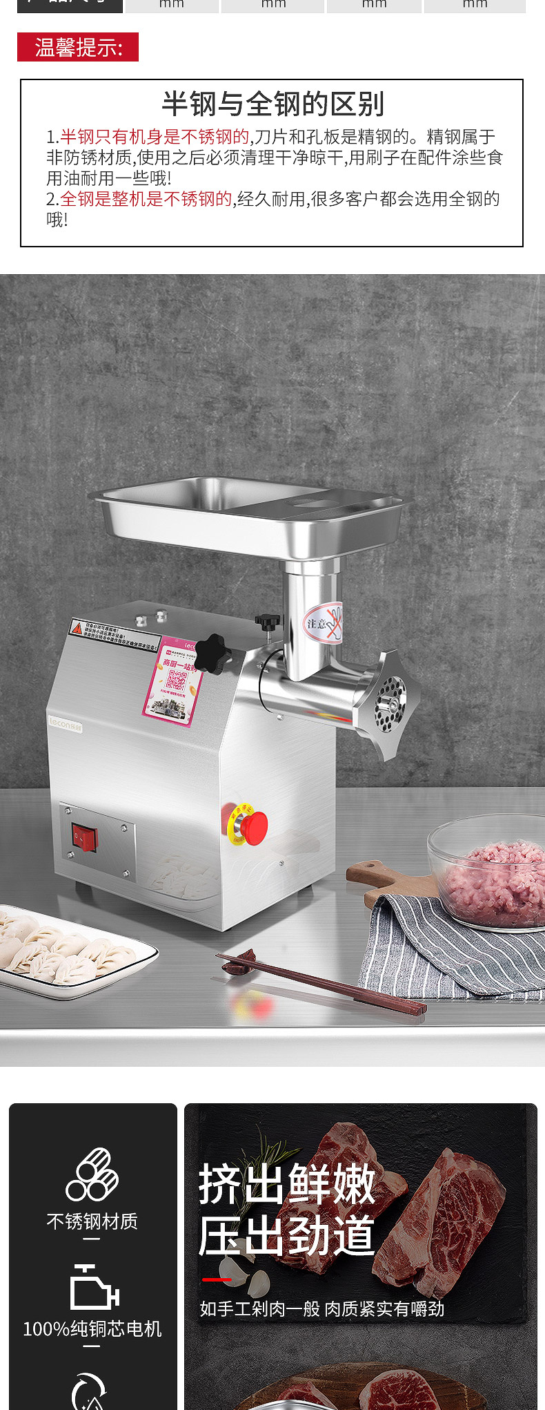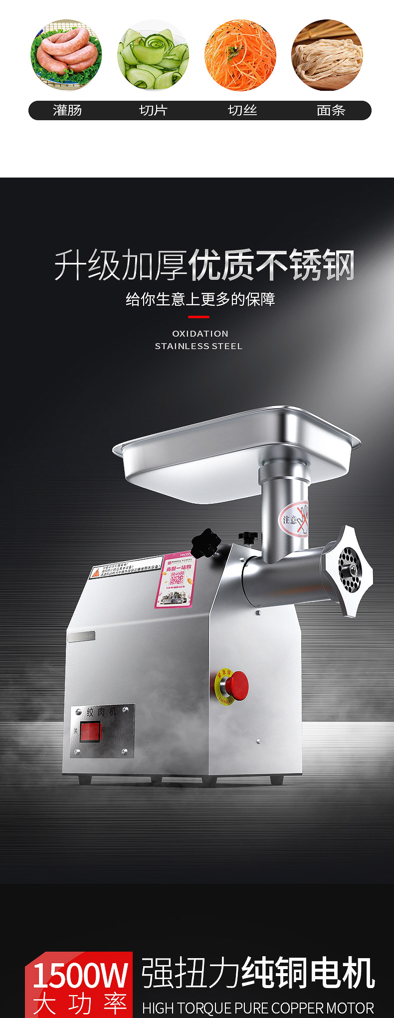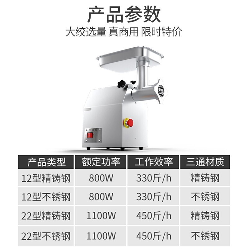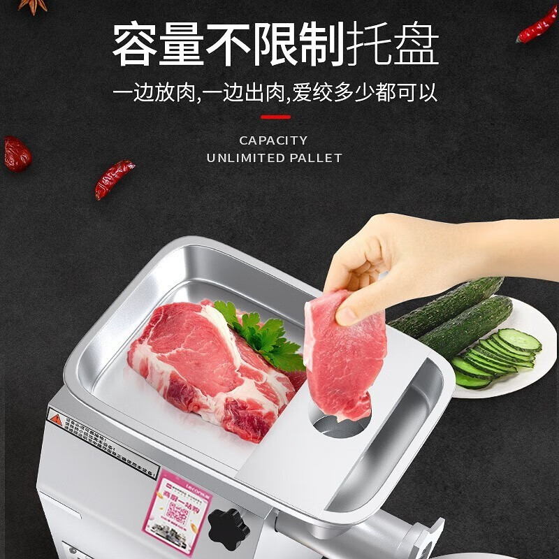 乐创 lecon 商用绞肉机大功率 酒店饭店餐厅专用 中型碎肉灌肠机多功能电动搅拌机 全不锈钢YF-JR23 自营