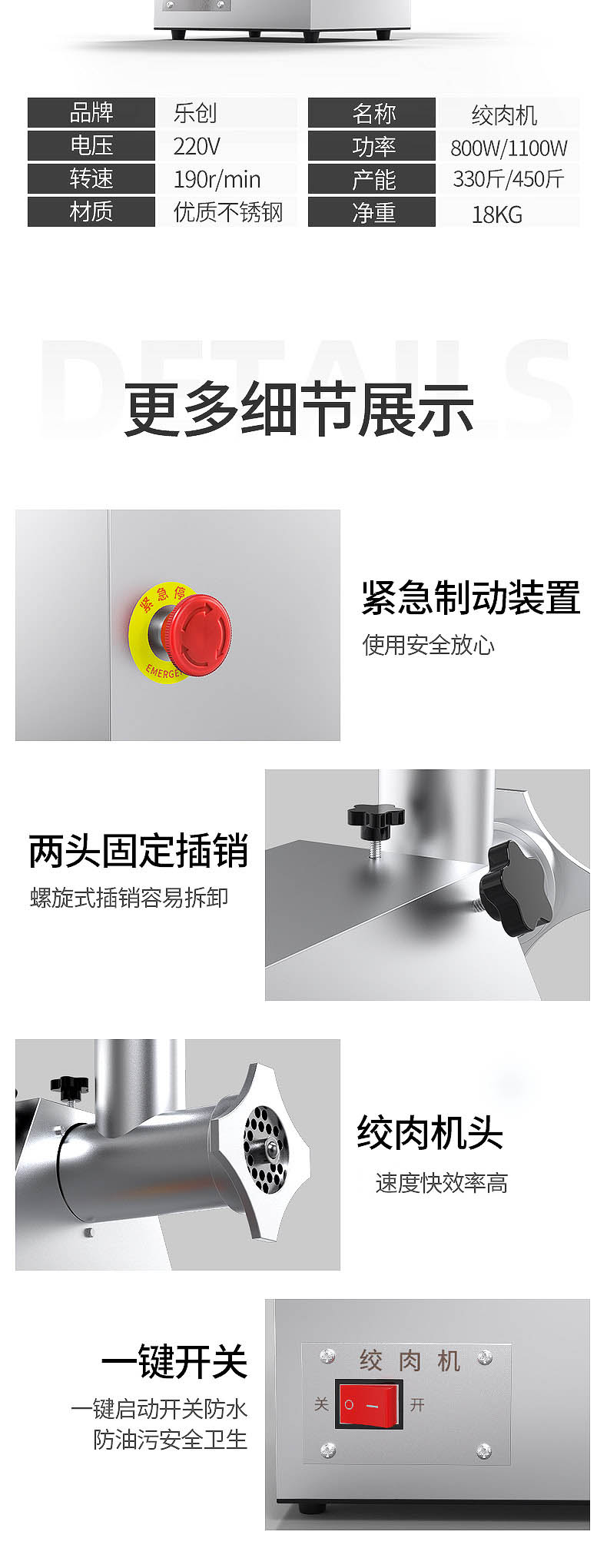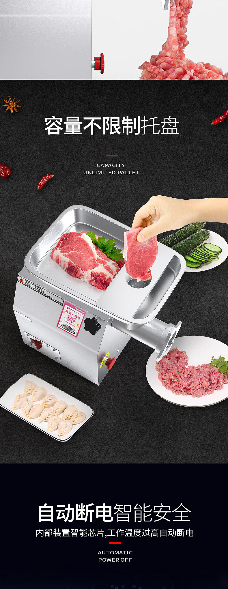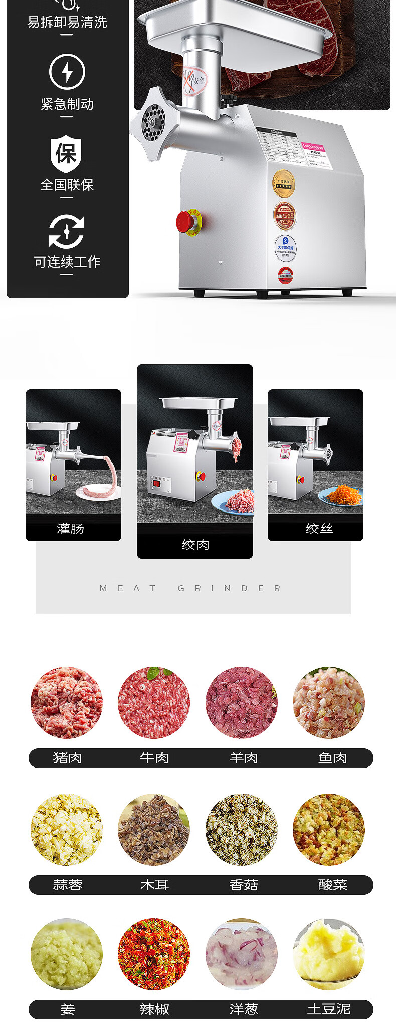 乐创 lecon 商用绞肉机大功率 酒店饭店餐厅专用 中型碎肉灌肠机多功能电动搅拌机 全不锈钢YF-JR23 自营
