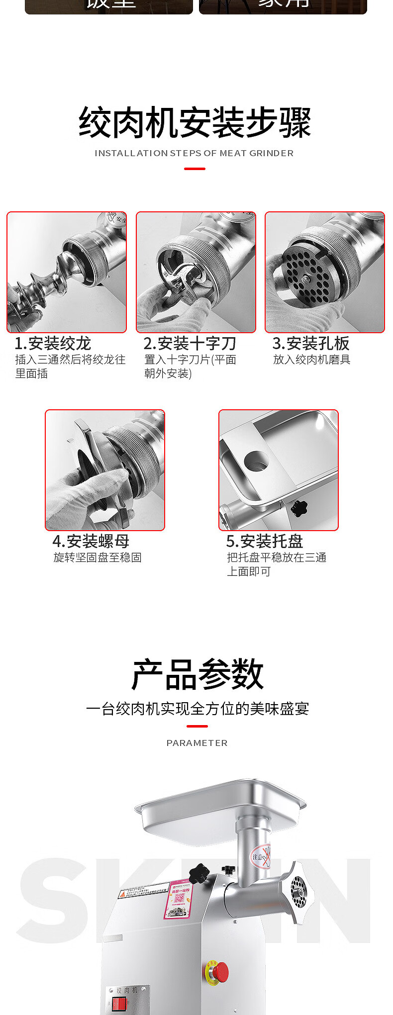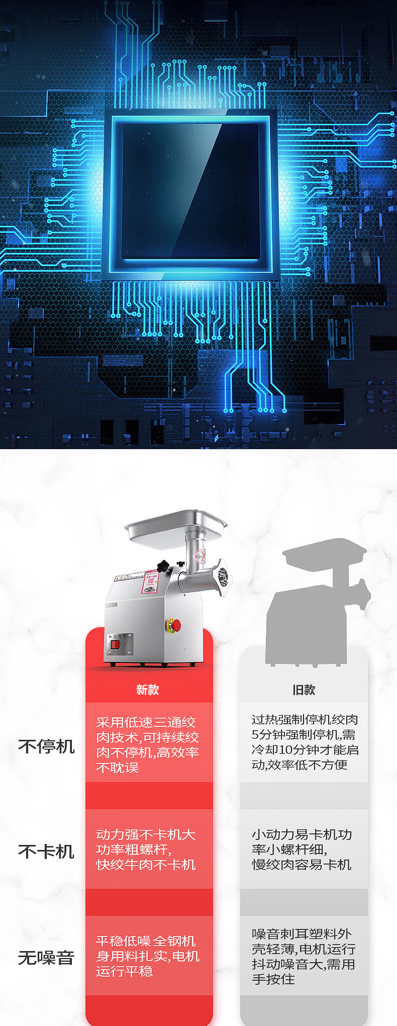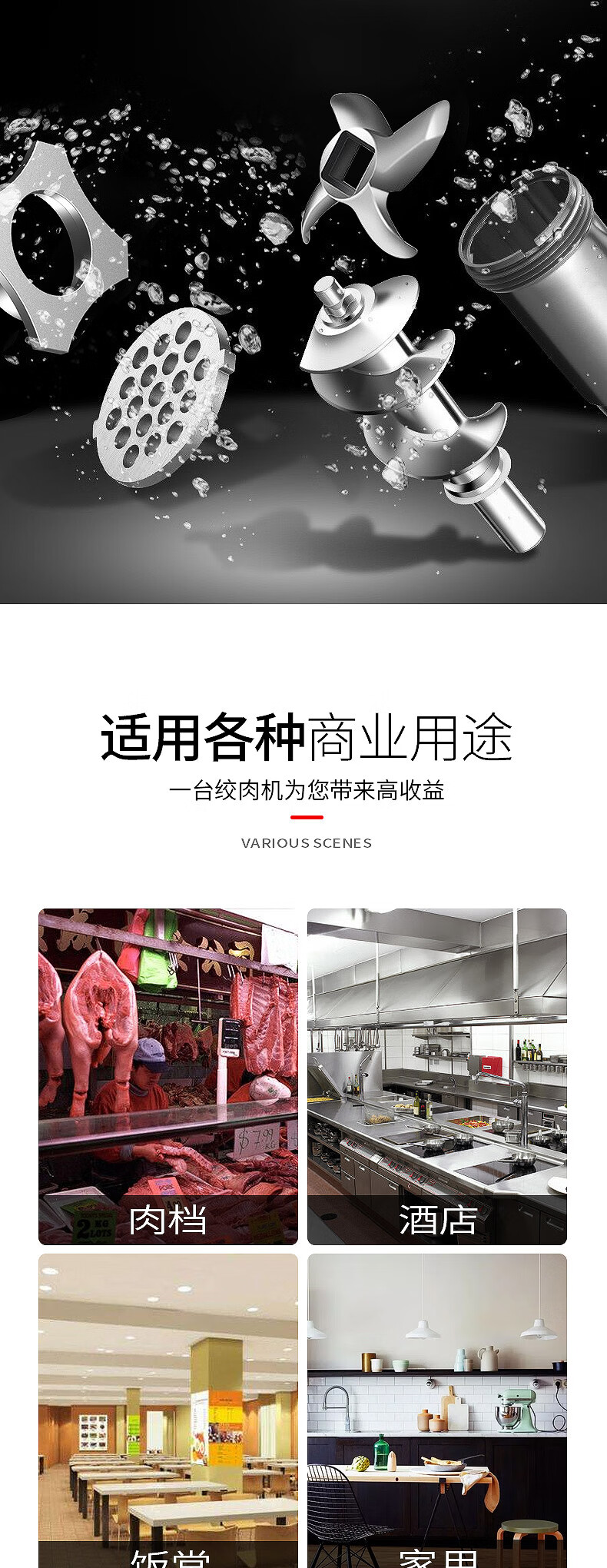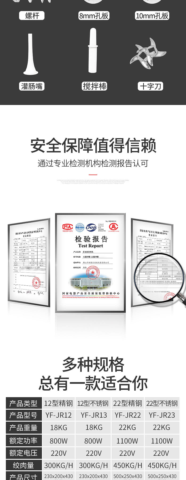乐创 lecon 商用绞肉机大功率 酒店饭店餐厅专用 中型碎肉灌肠机多功能电动搅拌机 全不锈钢YF-JR23 自营