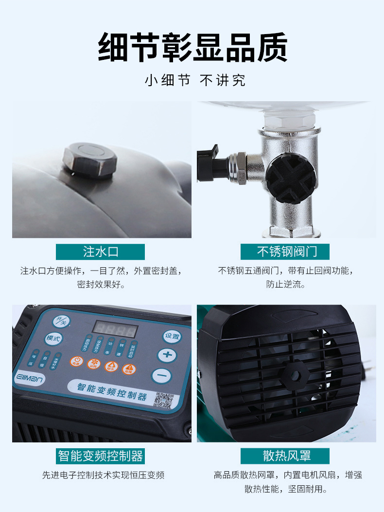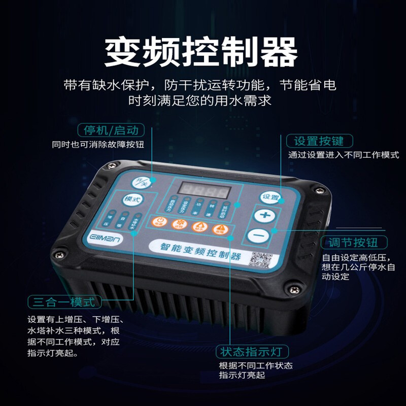 鸣固 自吸喷射泵 自来水增压泵高扬程大流量抽水泵 1100w变频不锈钢喷射泵 自营