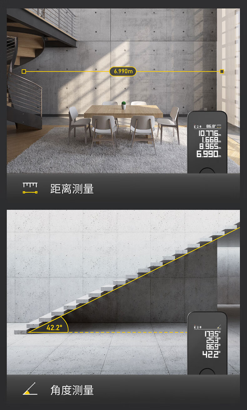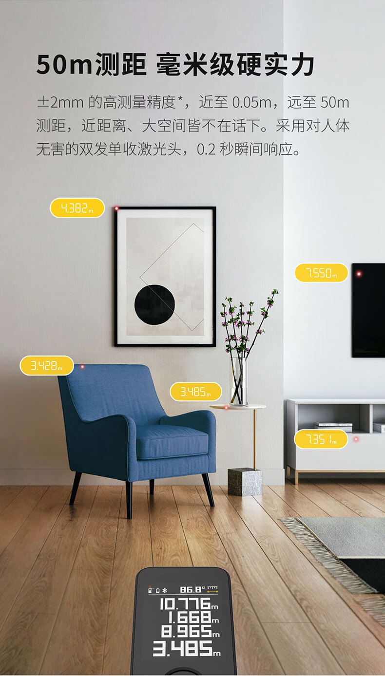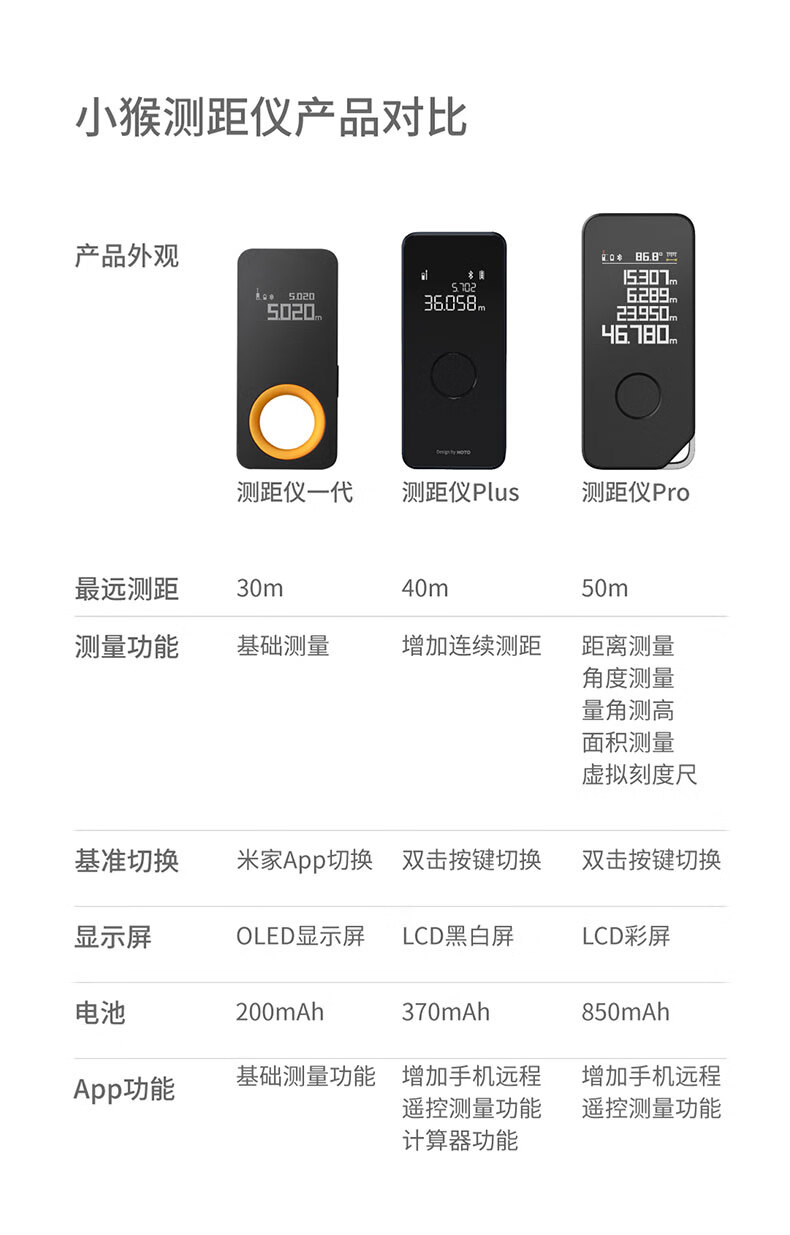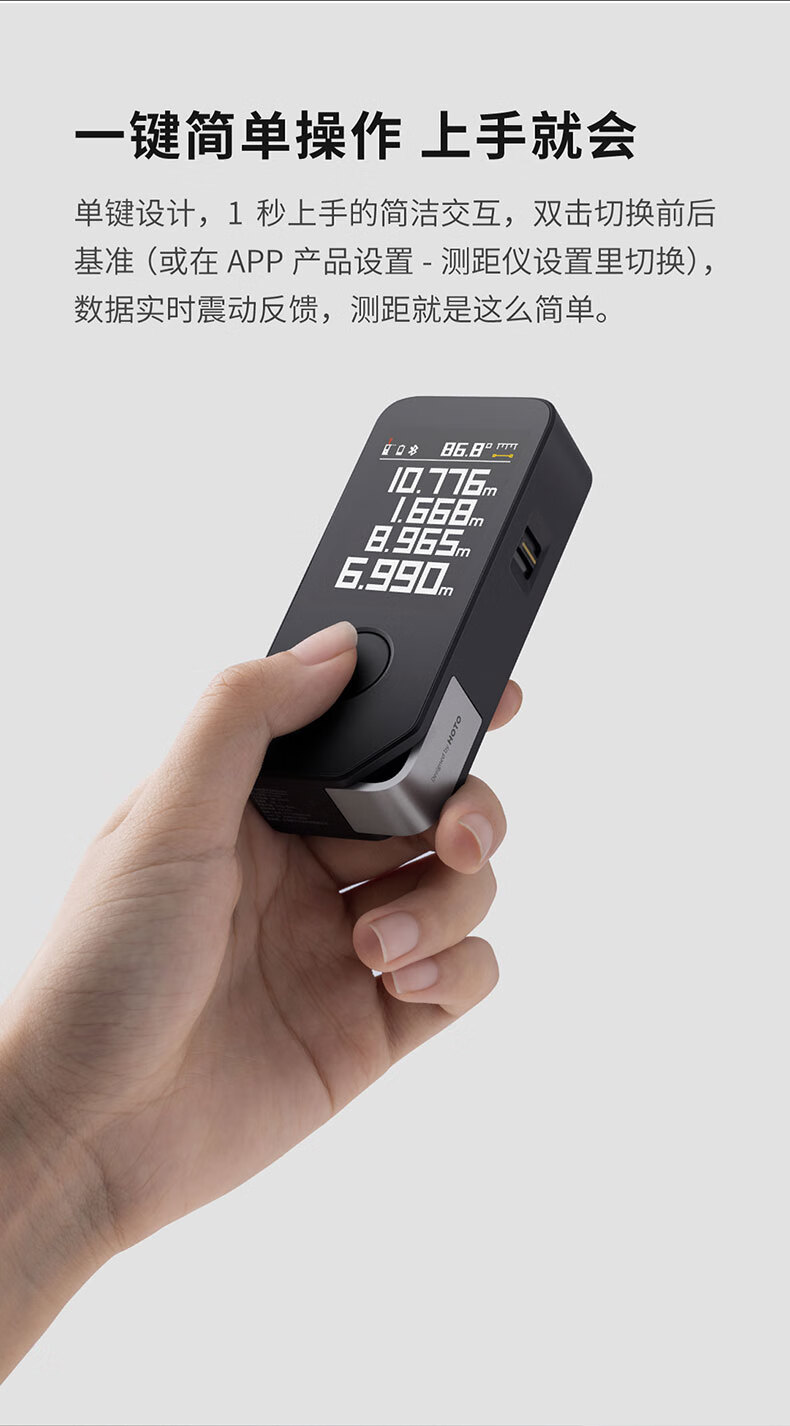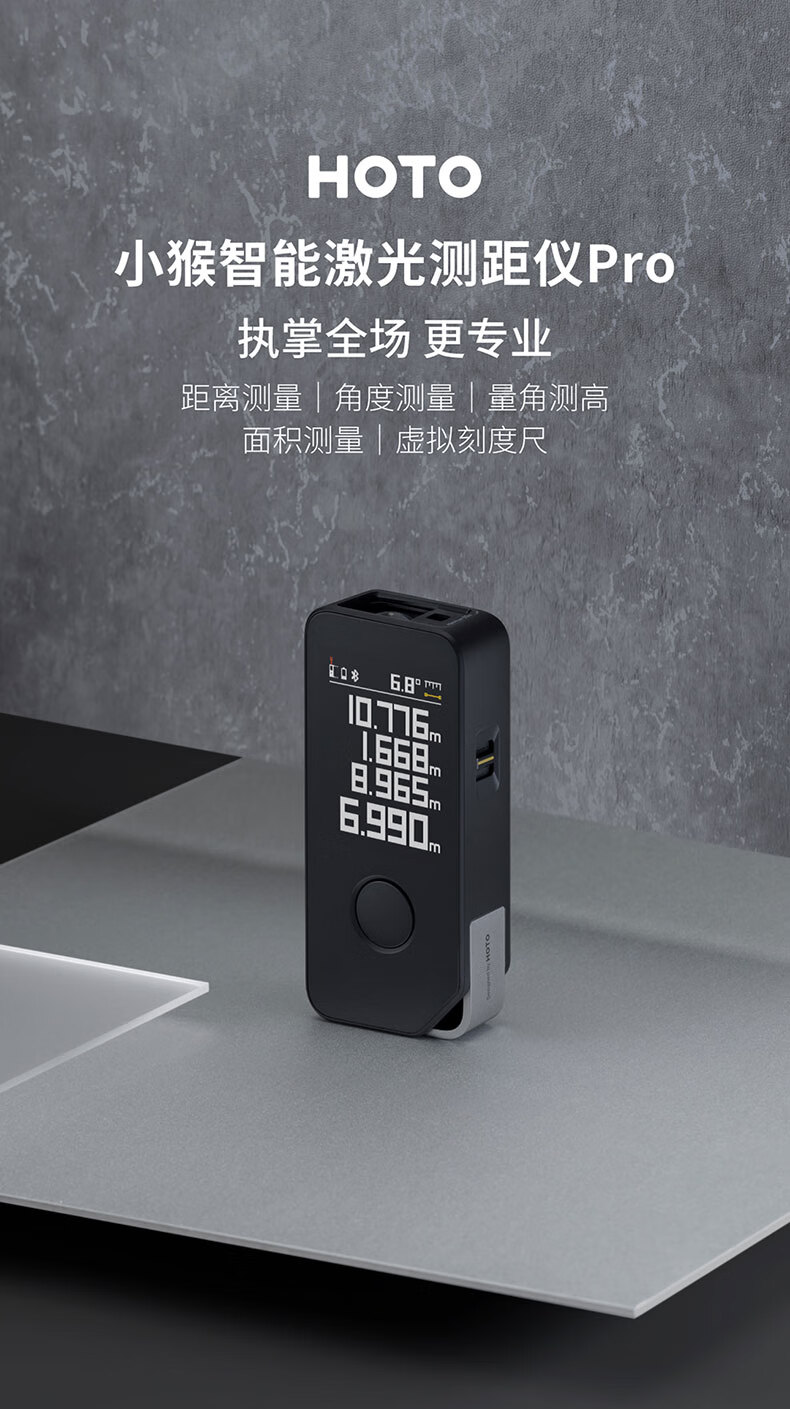 小猴工具HOTO智能实时激光测距仪APP可控智能绘图红外线量房仪器50m 自营