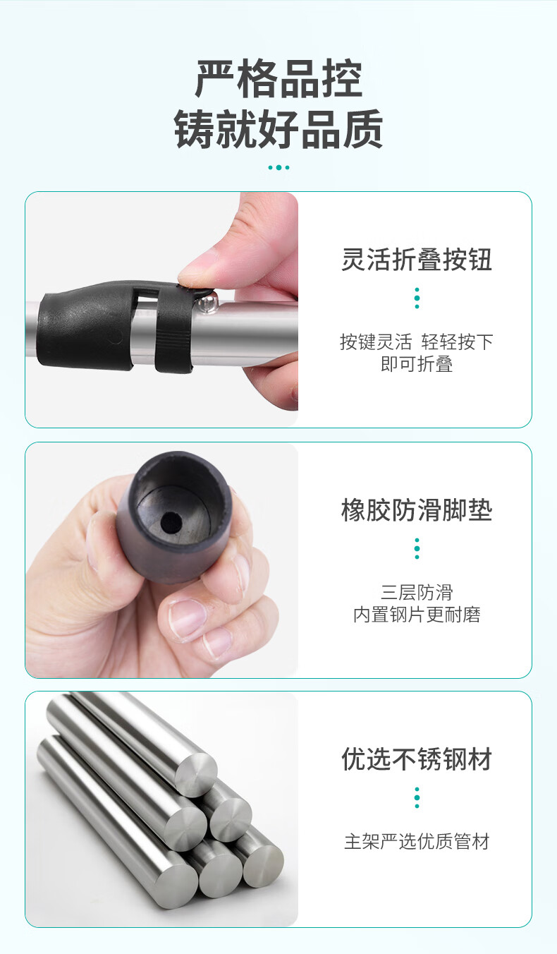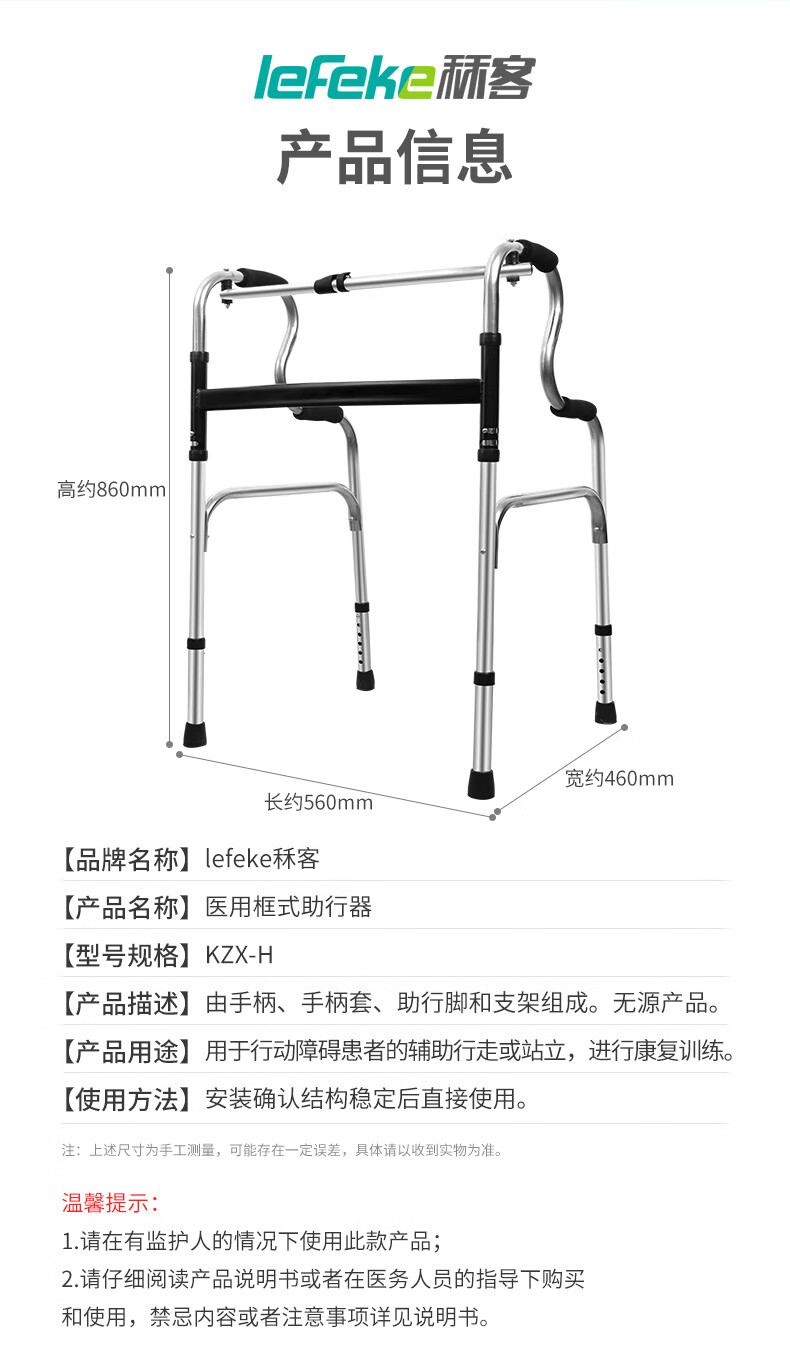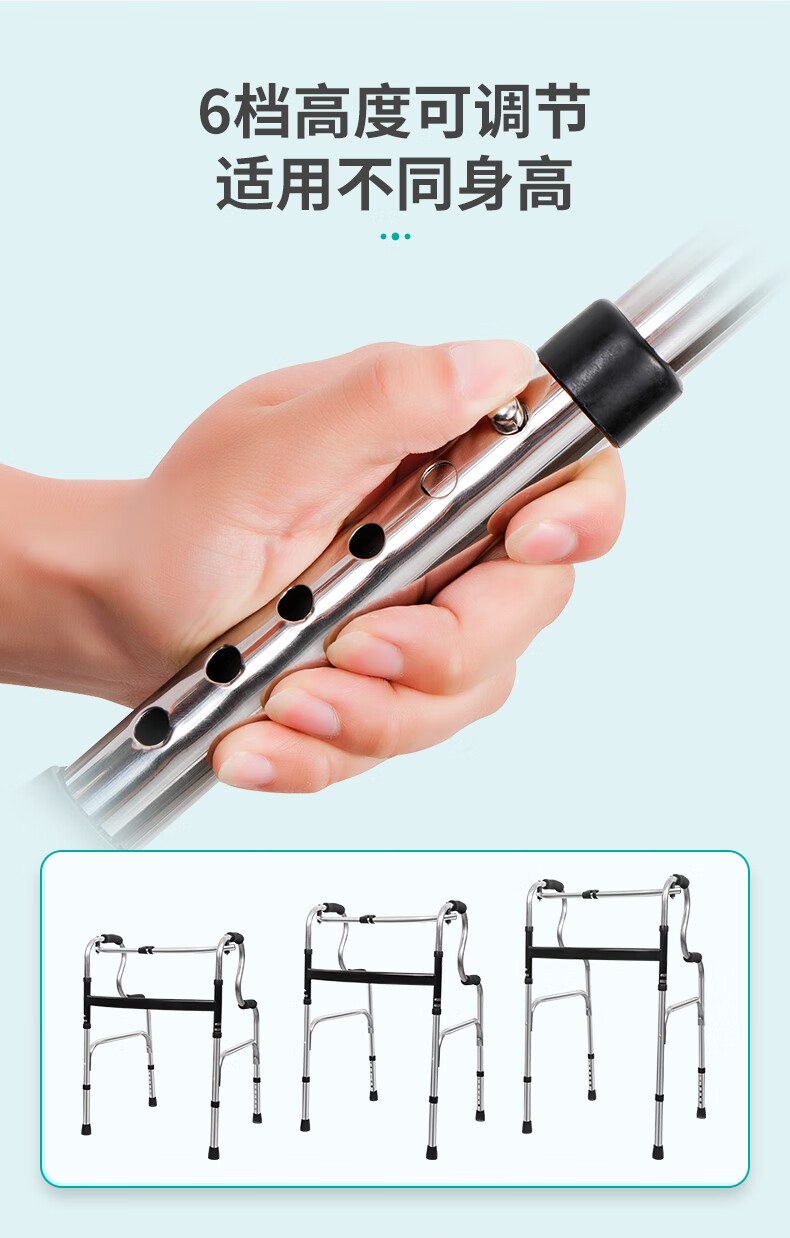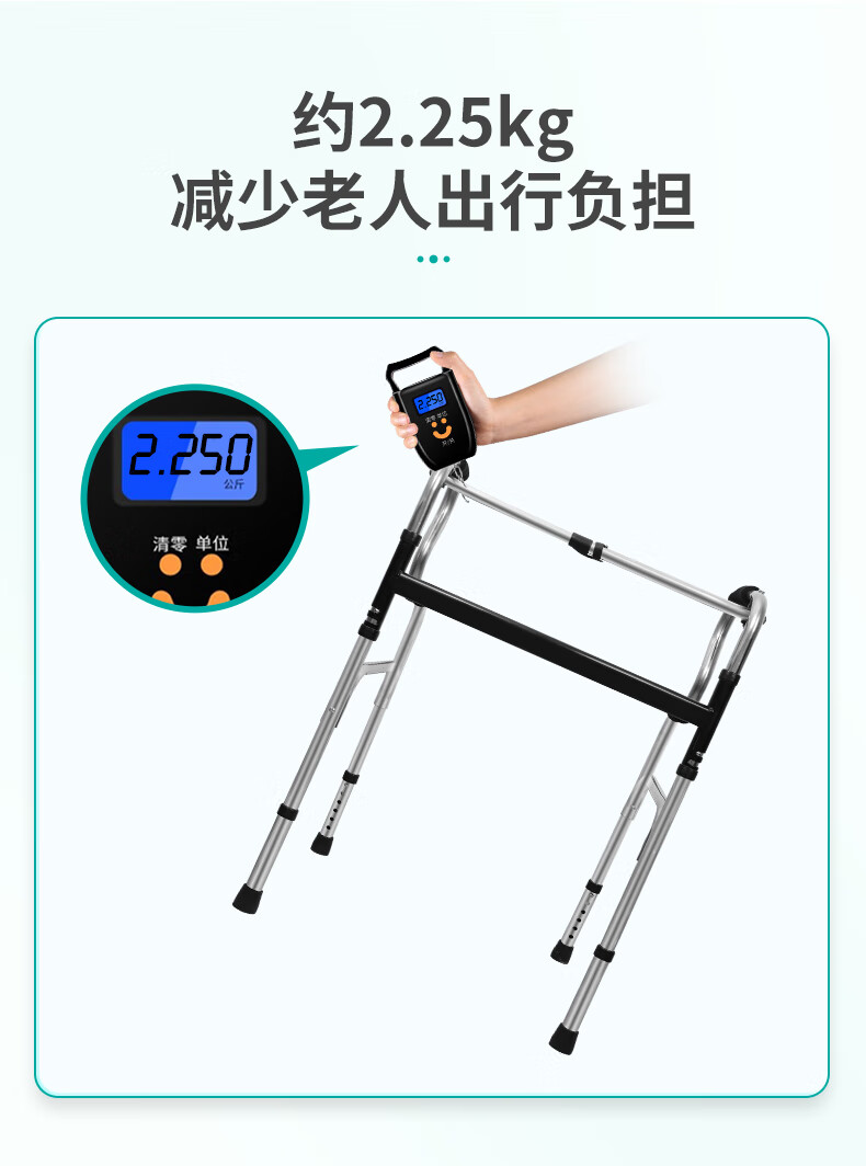 秝客*老人助行器 老人助力行走器四脚拐杖辅助行走器走路辅助器残疾人手扶助力架折叠助步带轮 不锈钢双弯 自营