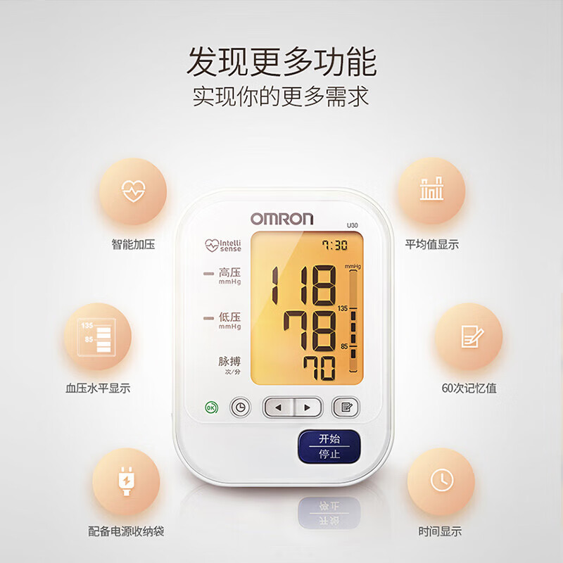 欧姆龙(OMRON)电子血压计家用上臂式 医用血压仪 测血压U30 自营