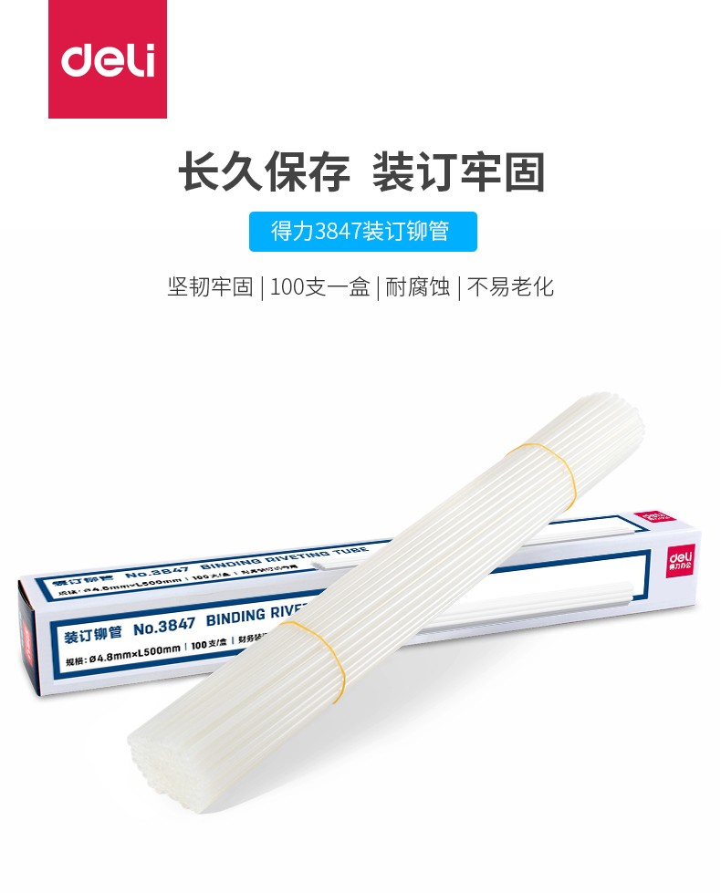 得力财务凭证装订机配套透明尼龙铆管 热熔胶管装订管塑料管耗材 100支/盒 3844(φ5.8*500mm) 自营