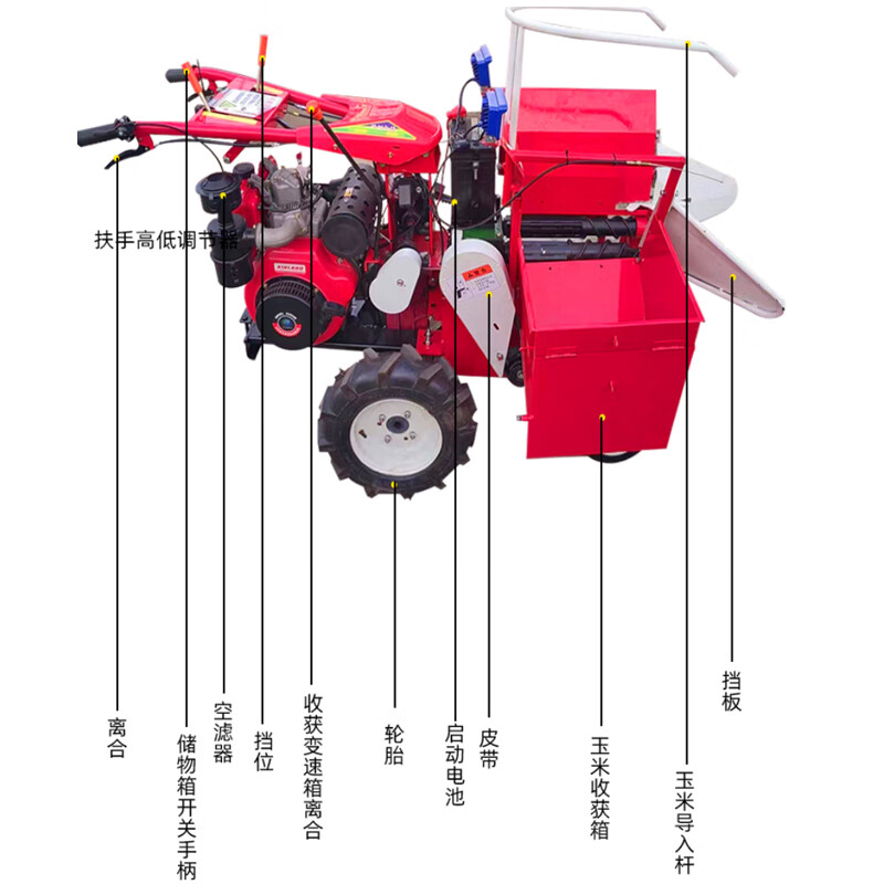 利晨 单行玉米收割机小型收玉米机器神器玉米联合收获机摘苞米机玉米秆粉碎秸秆还田一体机 195柴油皮带款 自营
