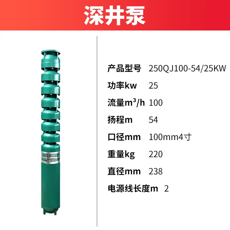 鸣固 深井泵380v三相高扬程大流量多级灌溉QJ潜水泵农用喷灌 250QJ100-54/25KW 自营