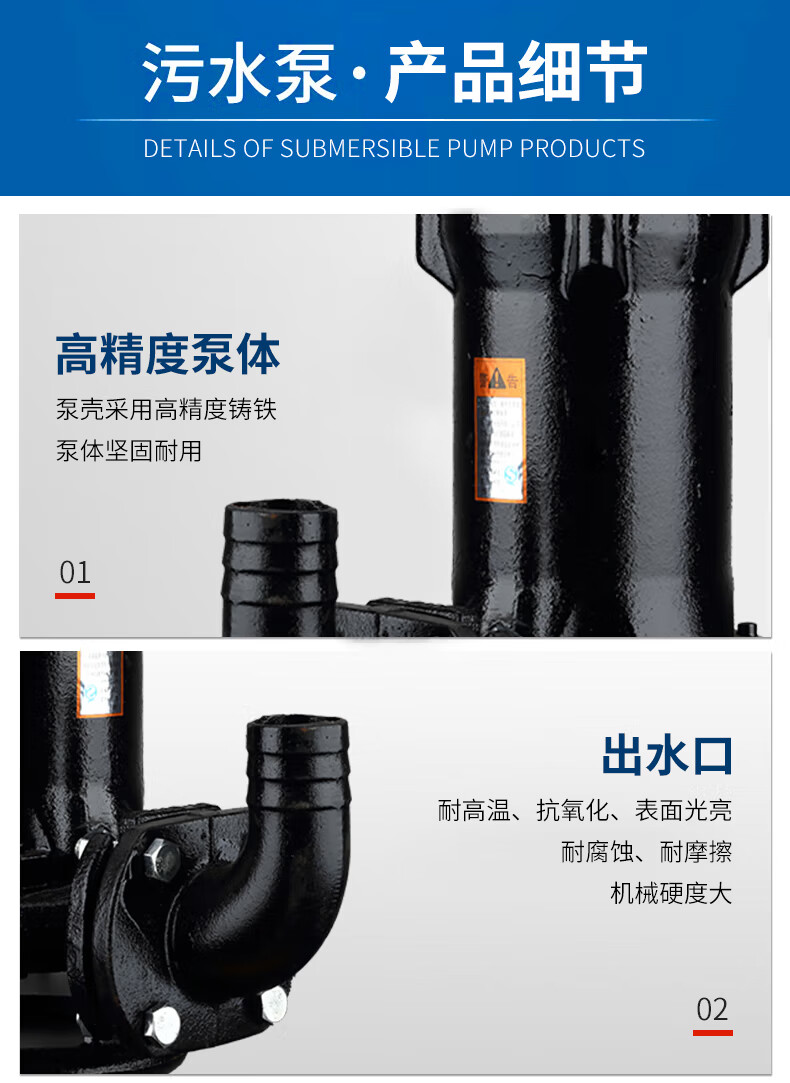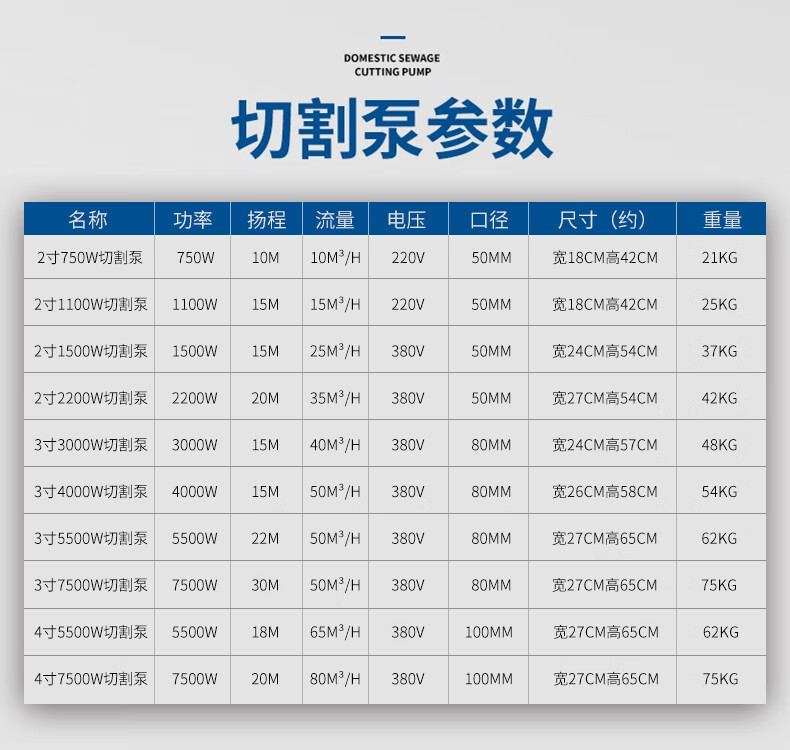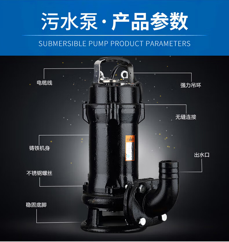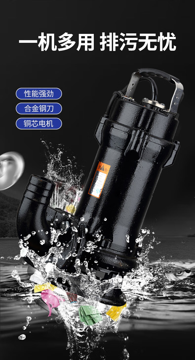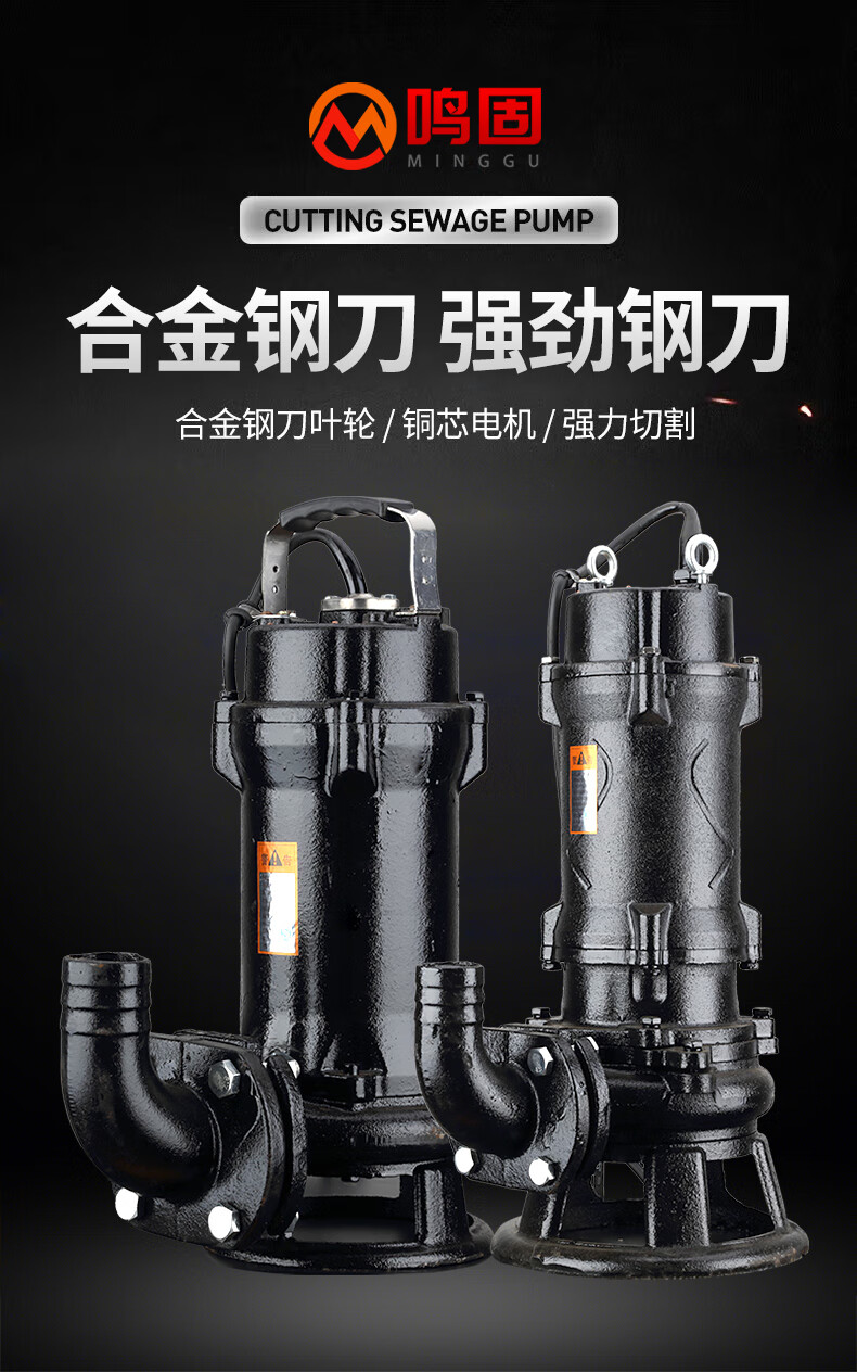 鸣固 切割式污水泵化粪池抽粪家用220V潜水防汛排污泵带绞刀 750W2寸 自营