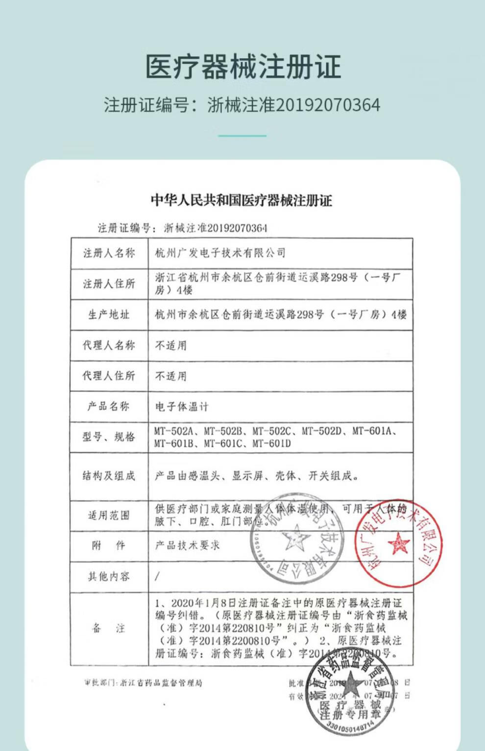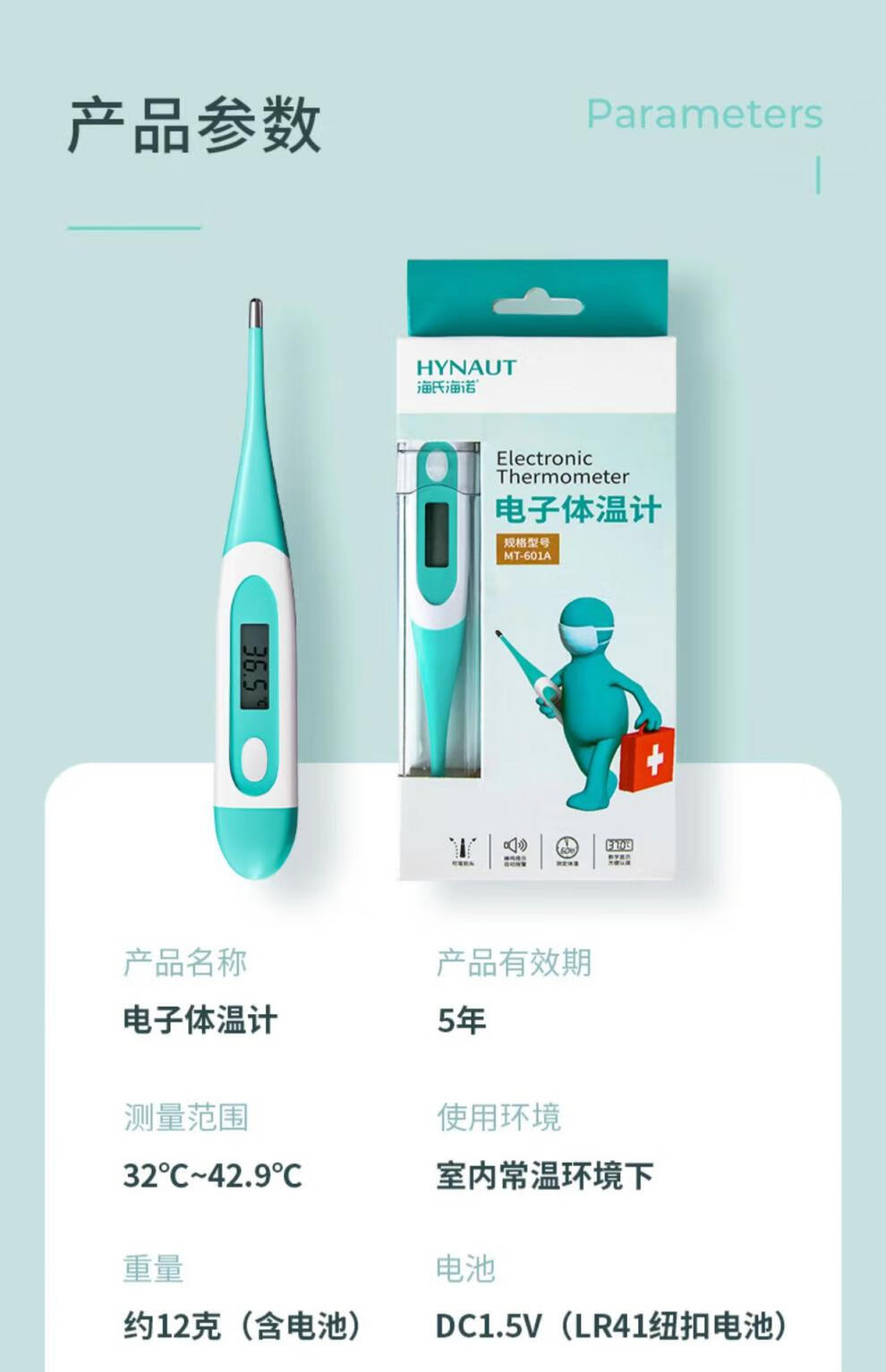 海氏海诺软头电子体温计儿童成人学生口腔腋下体温表无汞MT601A 自营