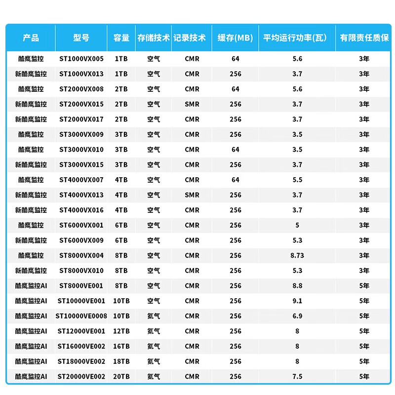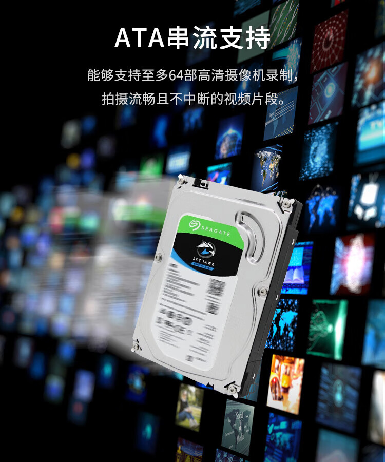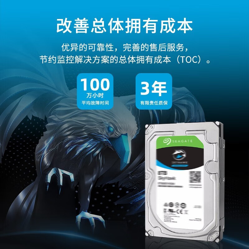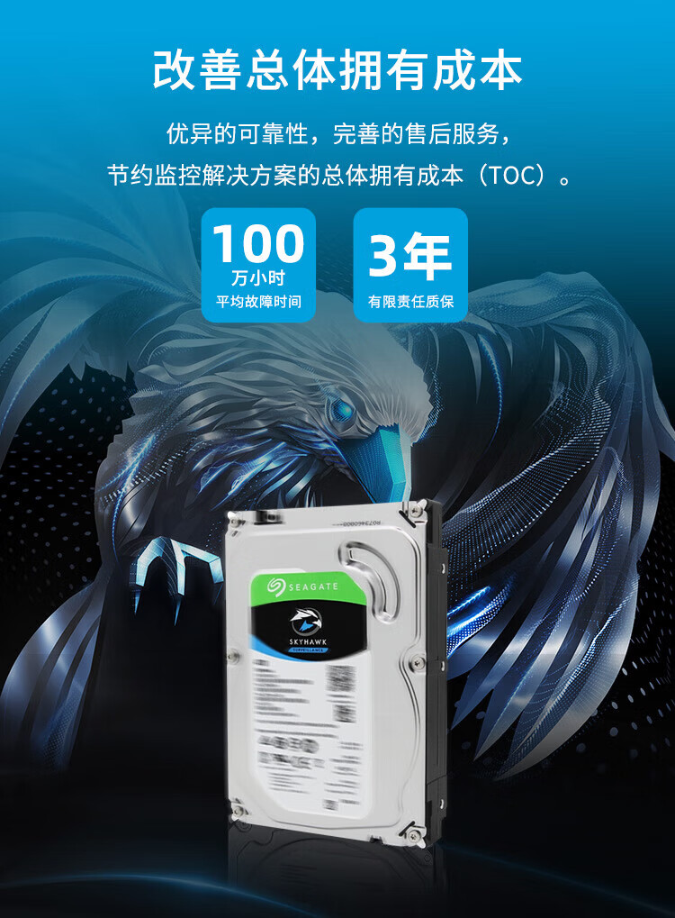 希捷(SEAGATE) 监控硬盘 希捷酷鹰 安防监控录像机用 SATA接口 3.5英寸 4TB ST4000VX013 低功耗版 自营
