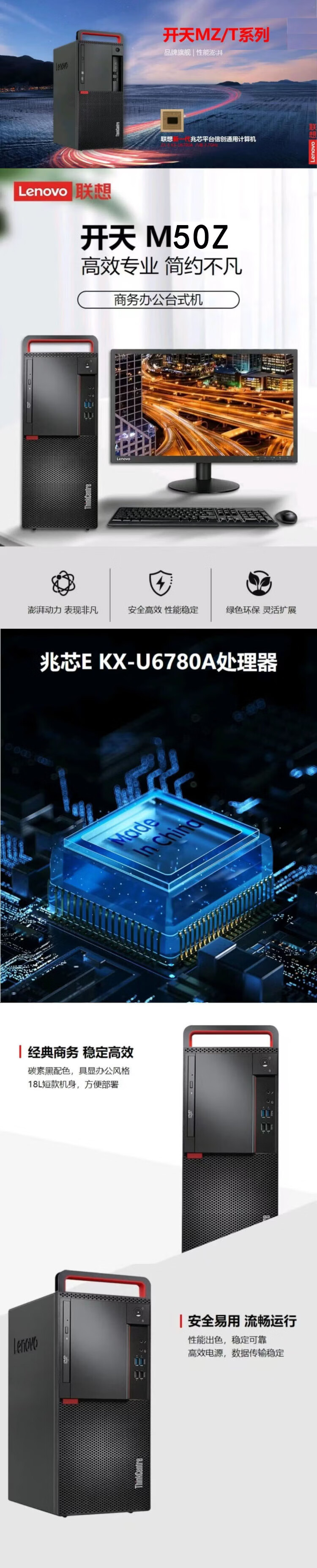 联想(lenovo)开天M50Z 兆芯KX-U6780A/8G/256G/集显/无光驱/23.8英寸显示器/UOS试用版 自营