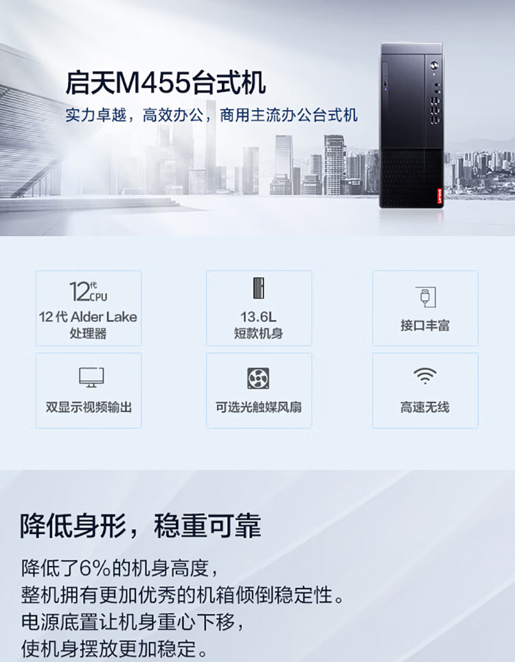 联想(lenovo) 启天M455-N000 商用台式机办公工作电脑 I5-12500 16G/512G 集显 单主机 改配 自营
