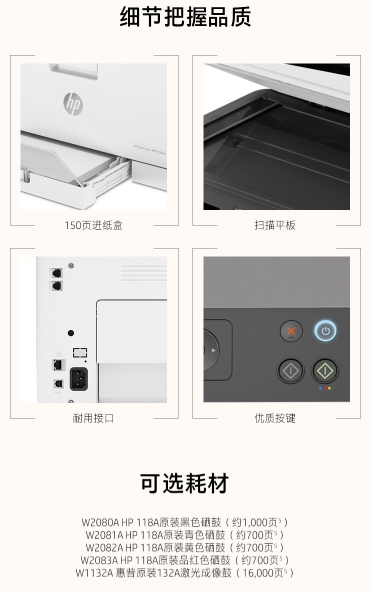 惠普(HP) 惠普 (HP) 178nw/179fnw A4彩色激光无线打印复印扫描一体机 179fnw官方标配 自营