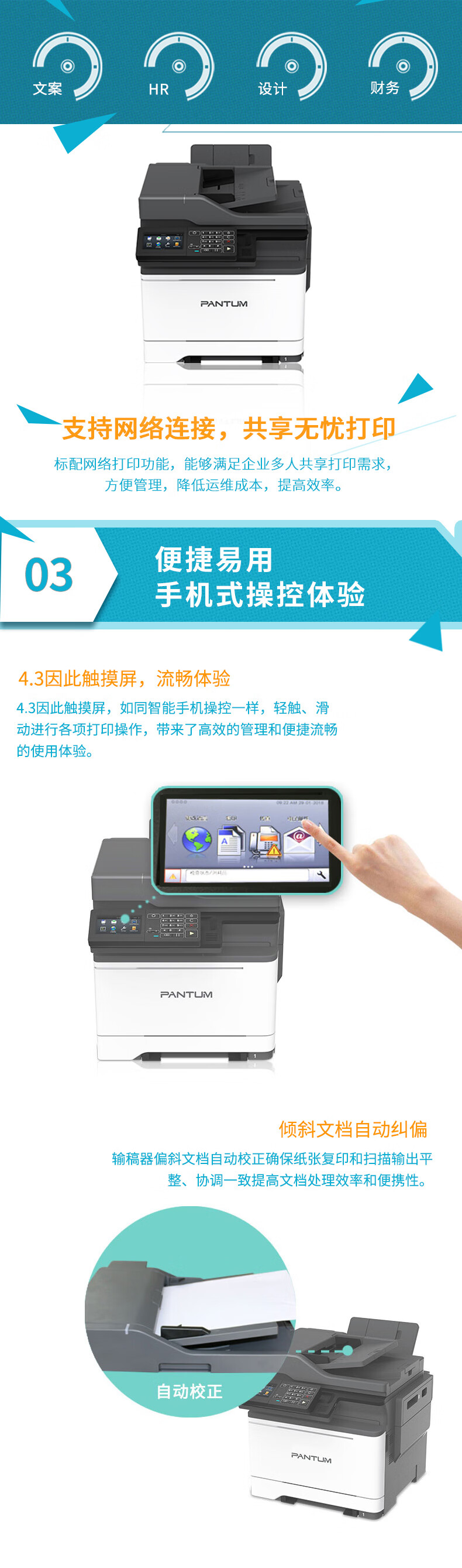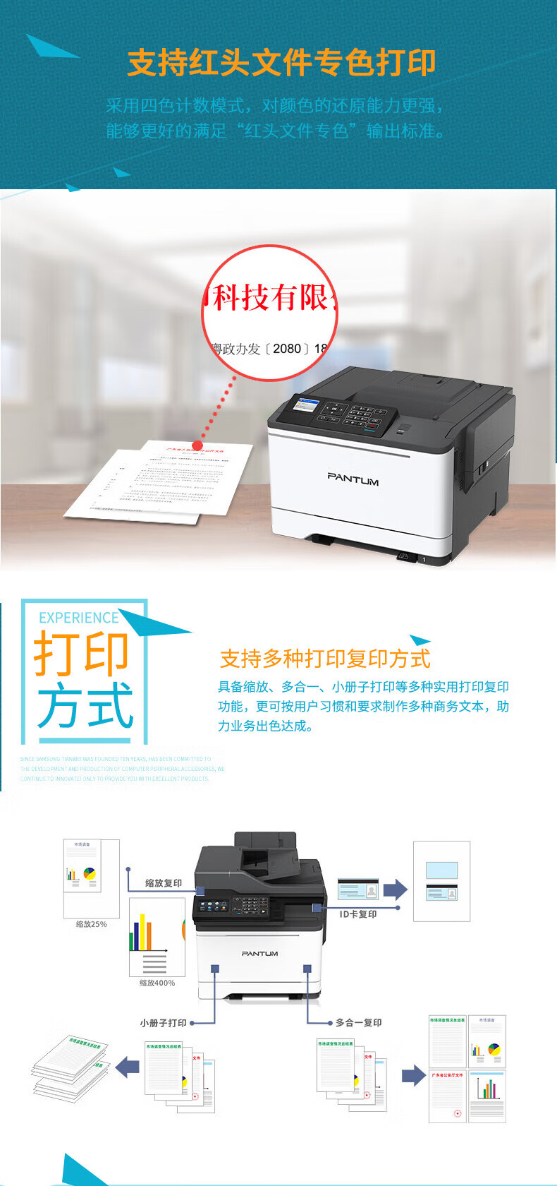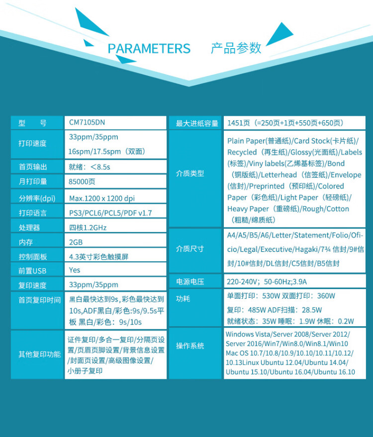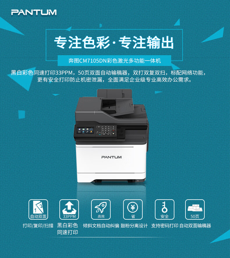奔图打印机 CM7105DN A4彩色四合一多功能一体机 打印/复印/扫描/传真 输稿器 自动双面 USB/有线打印 33ppm 自营