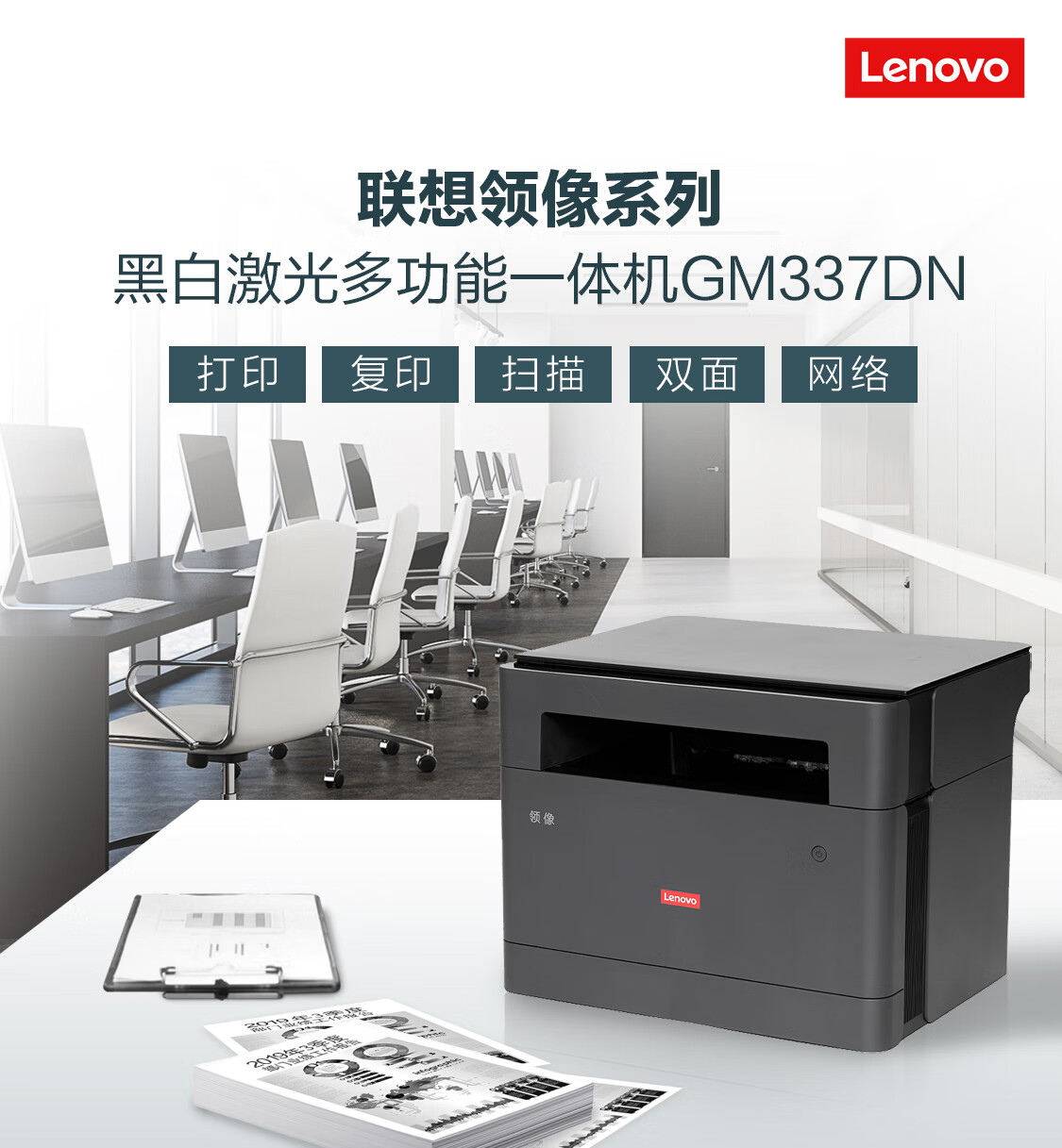 Lenovo联想GM337DNA4黑白国产激光多功能一体机打印/复印/扫描/支持麒麟/统信/中科方德/Windows系统 自营