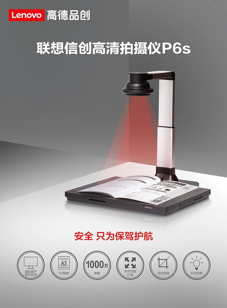 联想(Lenovo)P6s高清拍摄仪A3/A4幅面硬底/可升降可扩展/1000万像素文档照片高拍仪(国产化) 自营
