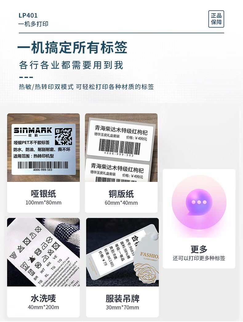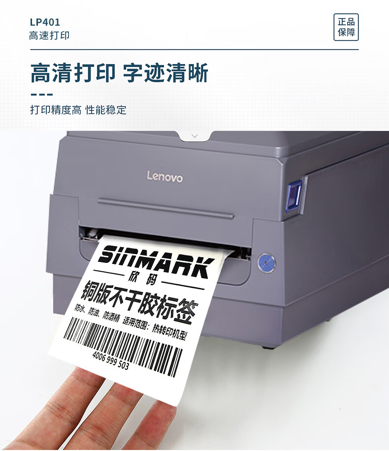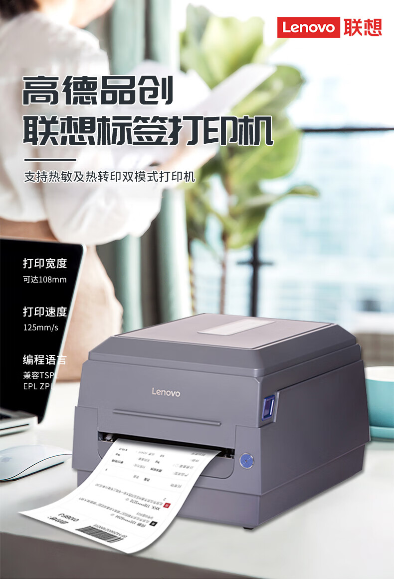 联想LP401标签打印机4寸热敏式/热转印式双模式支持统信麒麟中科国产信创名录专用打印机 自营