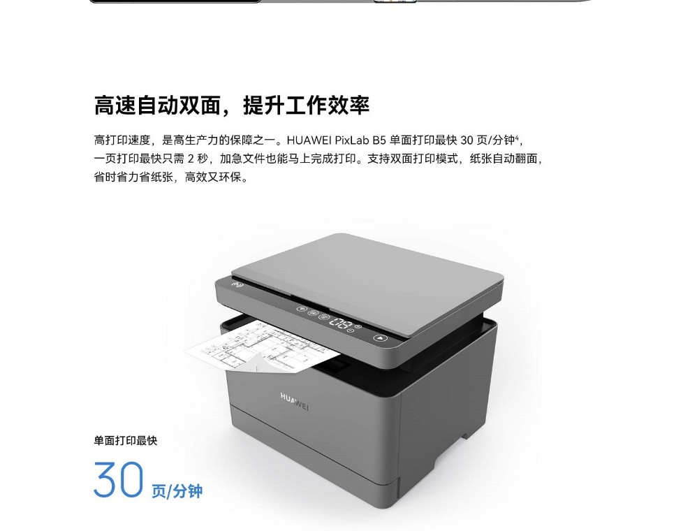 华为(HUAWEI)PixlabB5黑白激光多功能打印机打印复印扫描鸿蒙高速一体机自动双面 自营