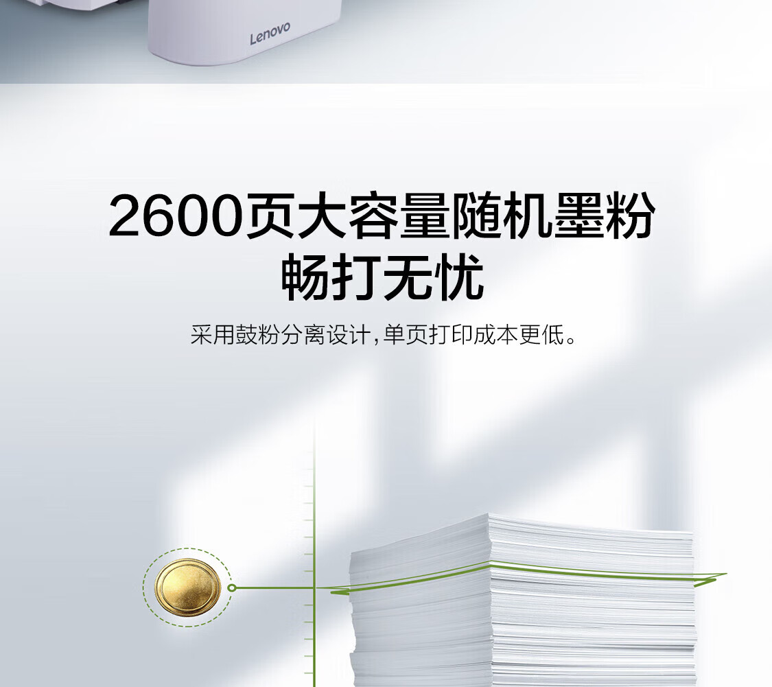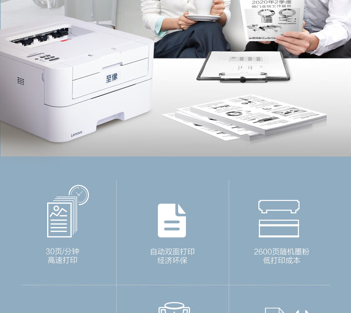 联想(Lenovo)至像L3070D自动双面黑白激光打印机学习打印机商用办公家用学习学生作业打印机 自营