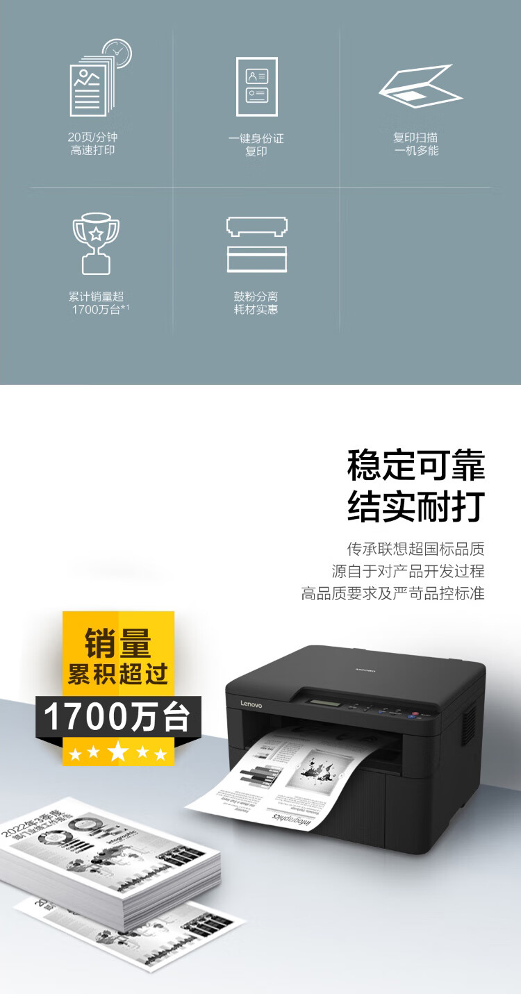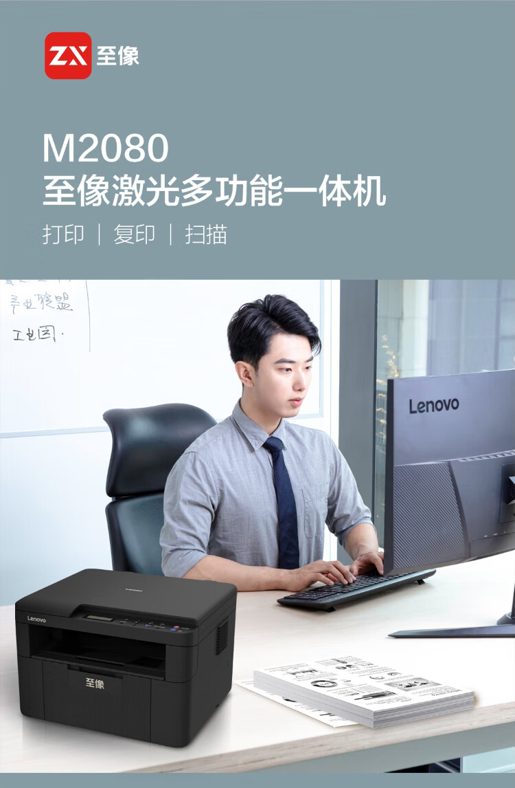 联想(Lenovo)至像M2080黑白激光打印多功能一体机办公商用家用(打印复印扫描) 自营