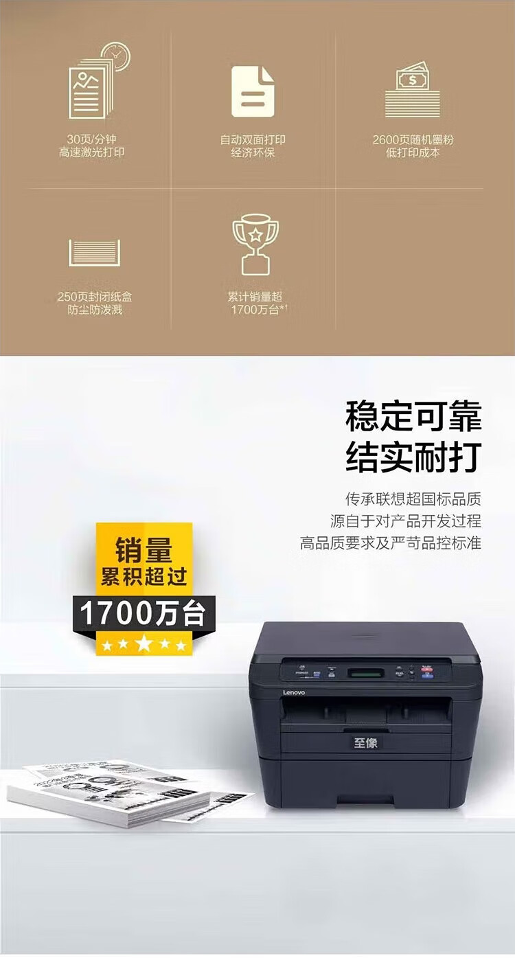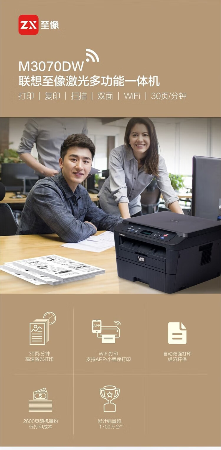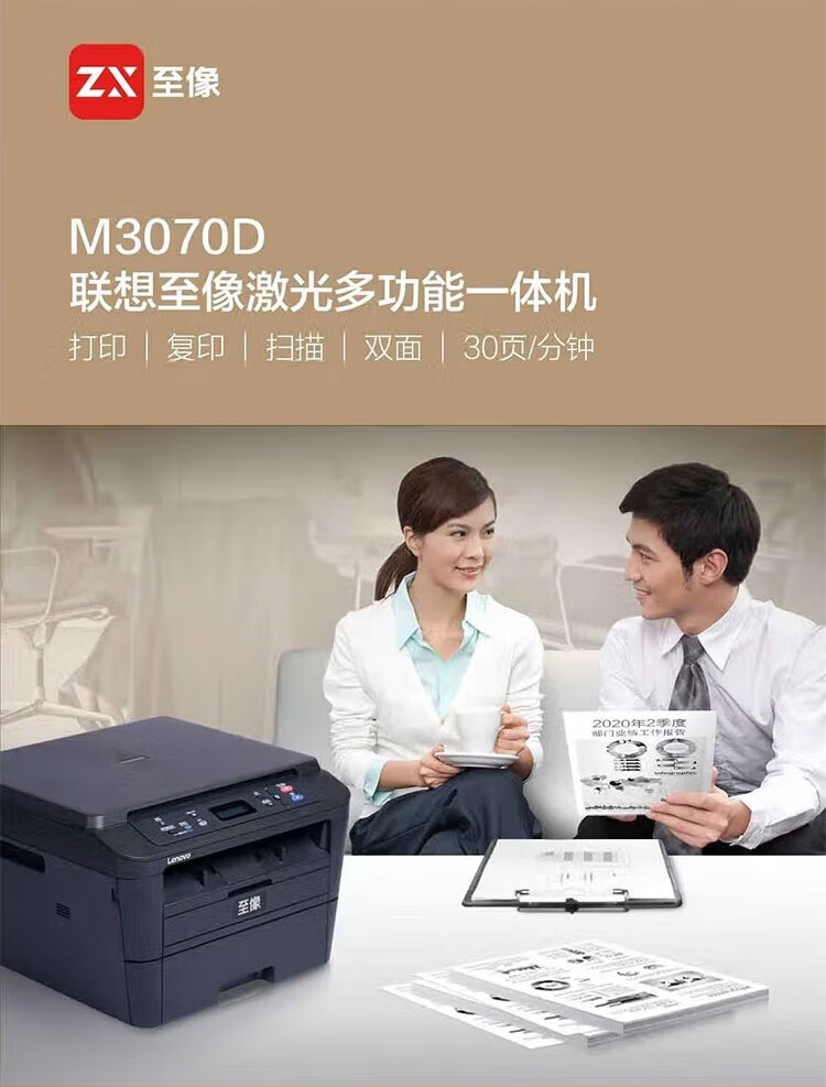 联想(Lenovo)至像M3070DW黑白激光打印机家用办公可选复印扫描自动双面无线M3070DW 自营