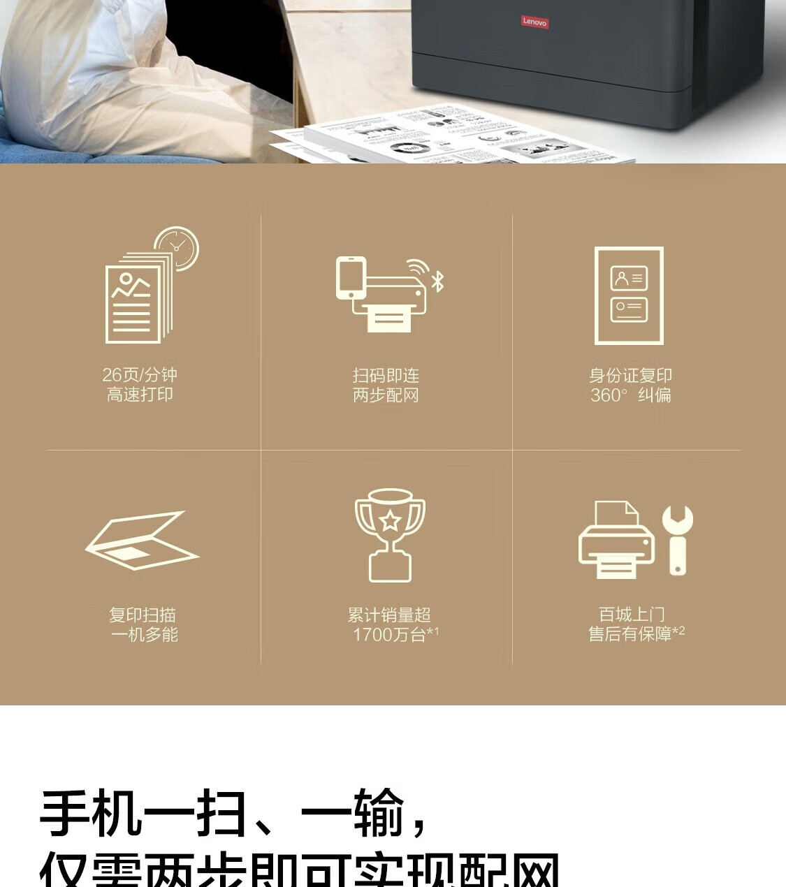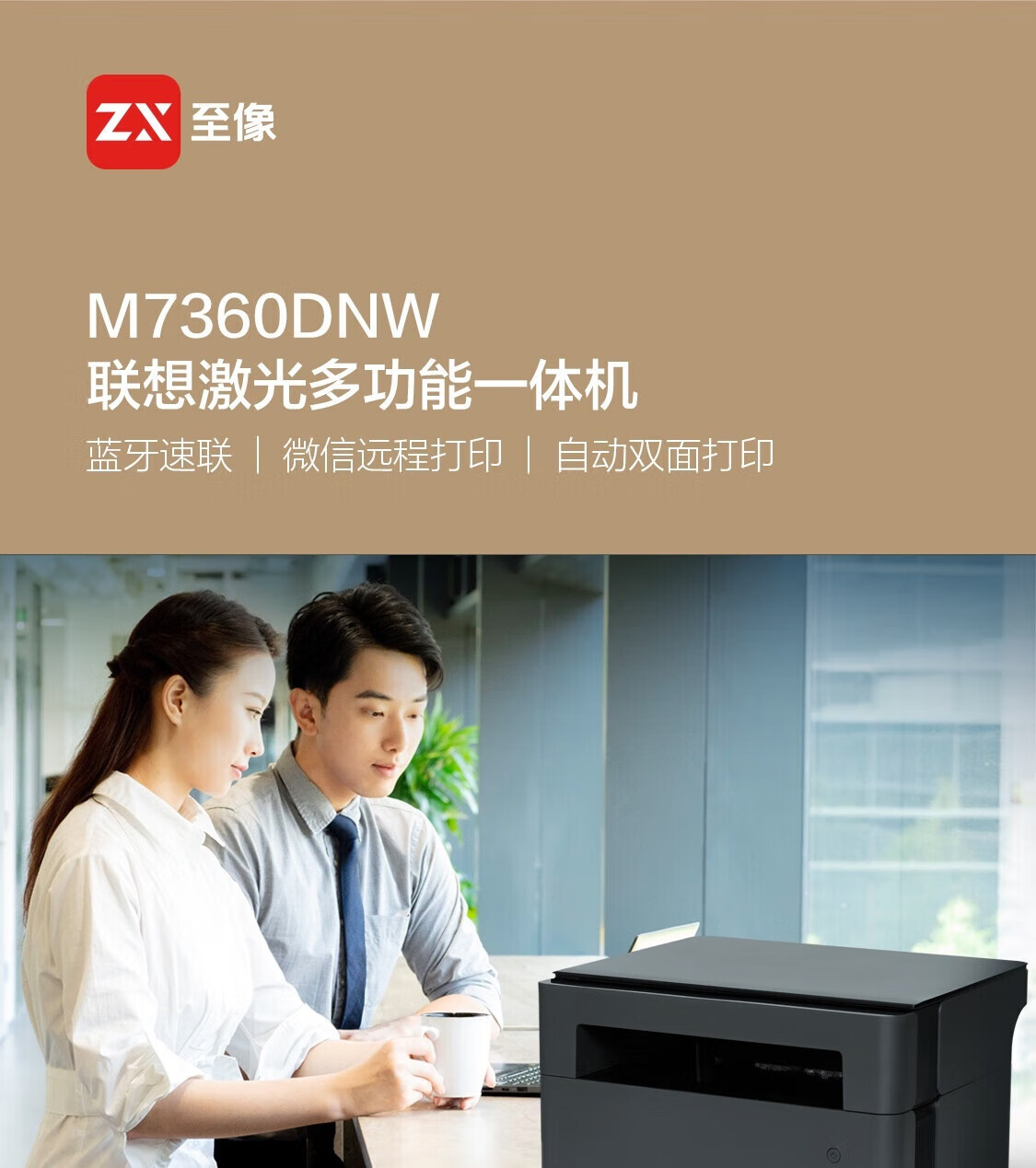 联想(Lenovo)M7360DNW黑白激光有线+无线网络双面打印多功能一体机商用家用办公(打印复印扫描) 自营