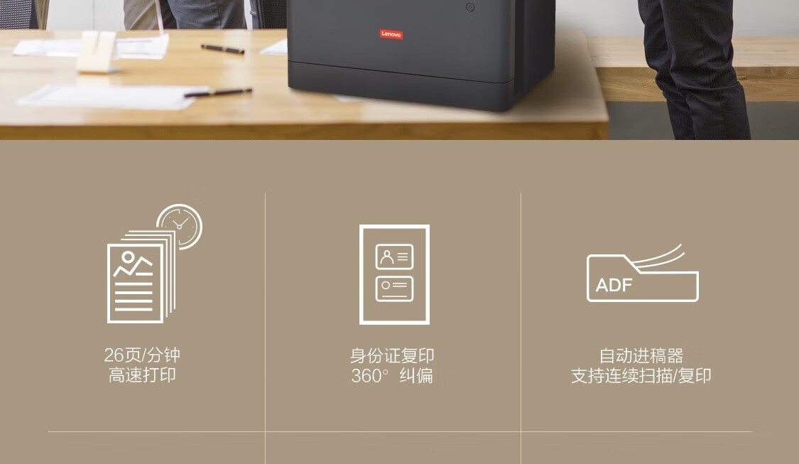 联想(Lenovo)M7360DNA自动双面黑白激光打印机打印复印一体机有线网络商用办公家用学习 自营