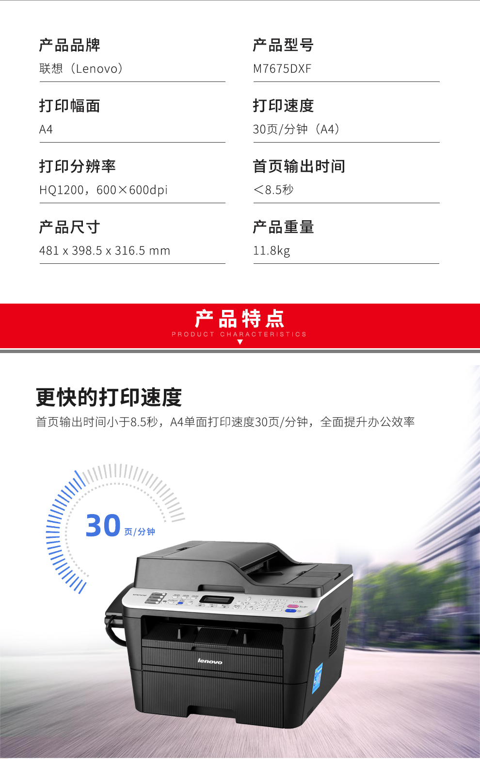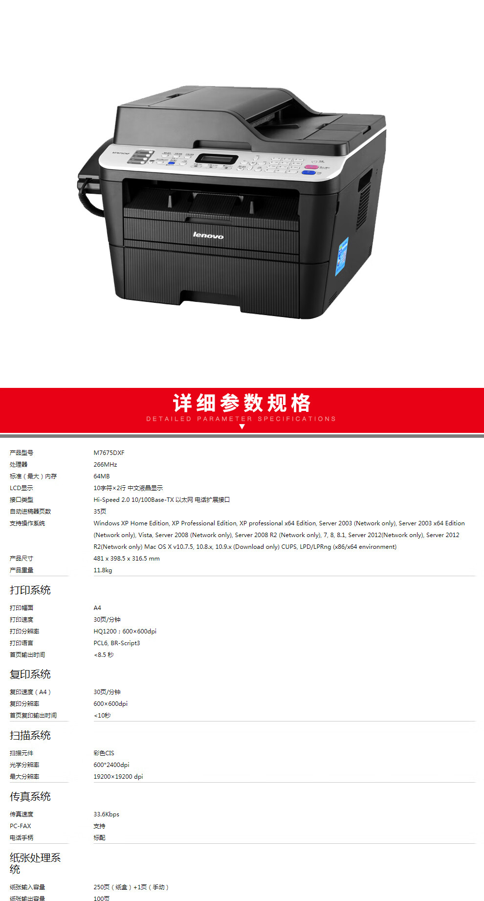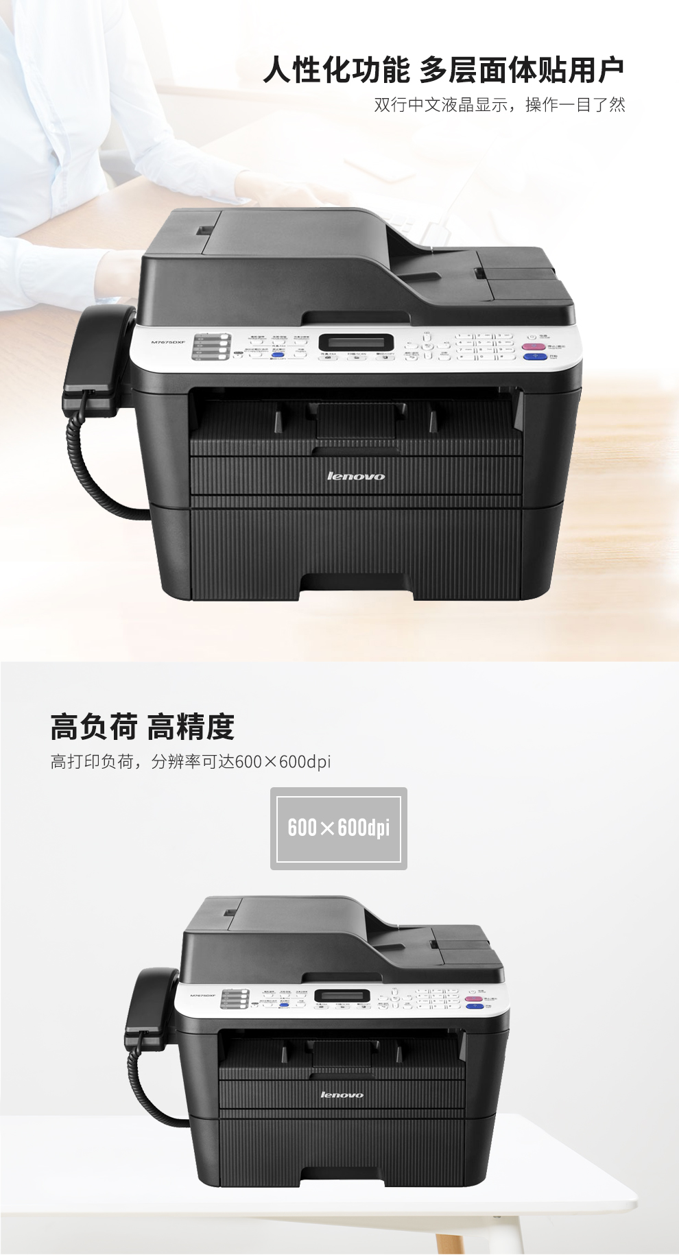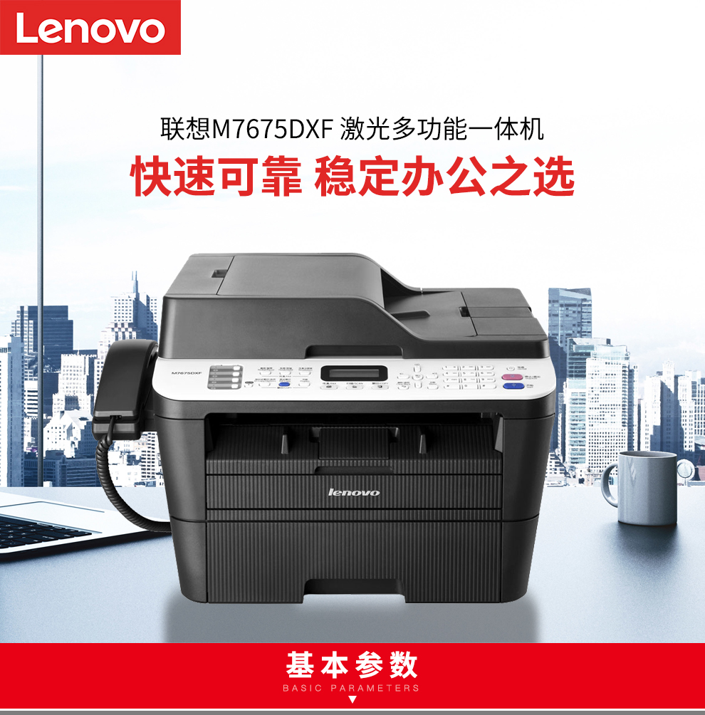 联想(Lenovo)M7675DXFA4黑白激光多功能一体机套装自动双面打印/复印/扫描/传真/加配2套LT2451墨盒 自营