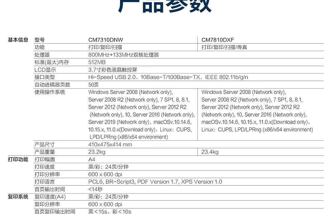联想(Lenovo)CM7810DXF彩色激光多功能一体机(打印/复印/扫描/传真)自动双面有线/无线网络 自营