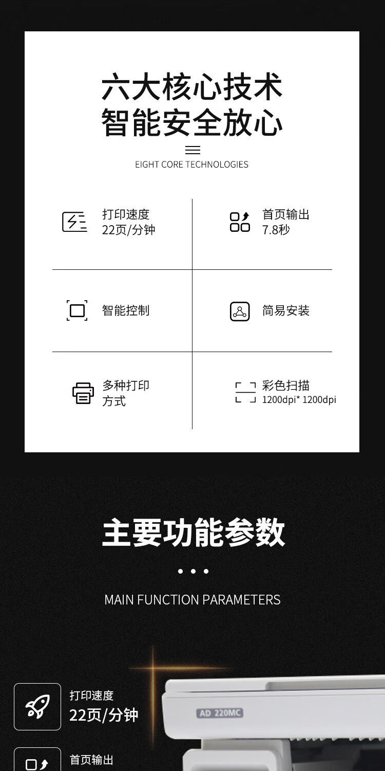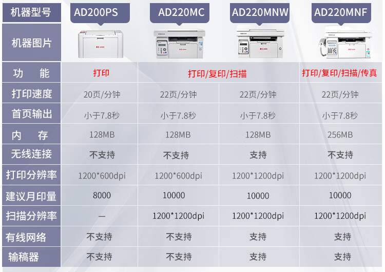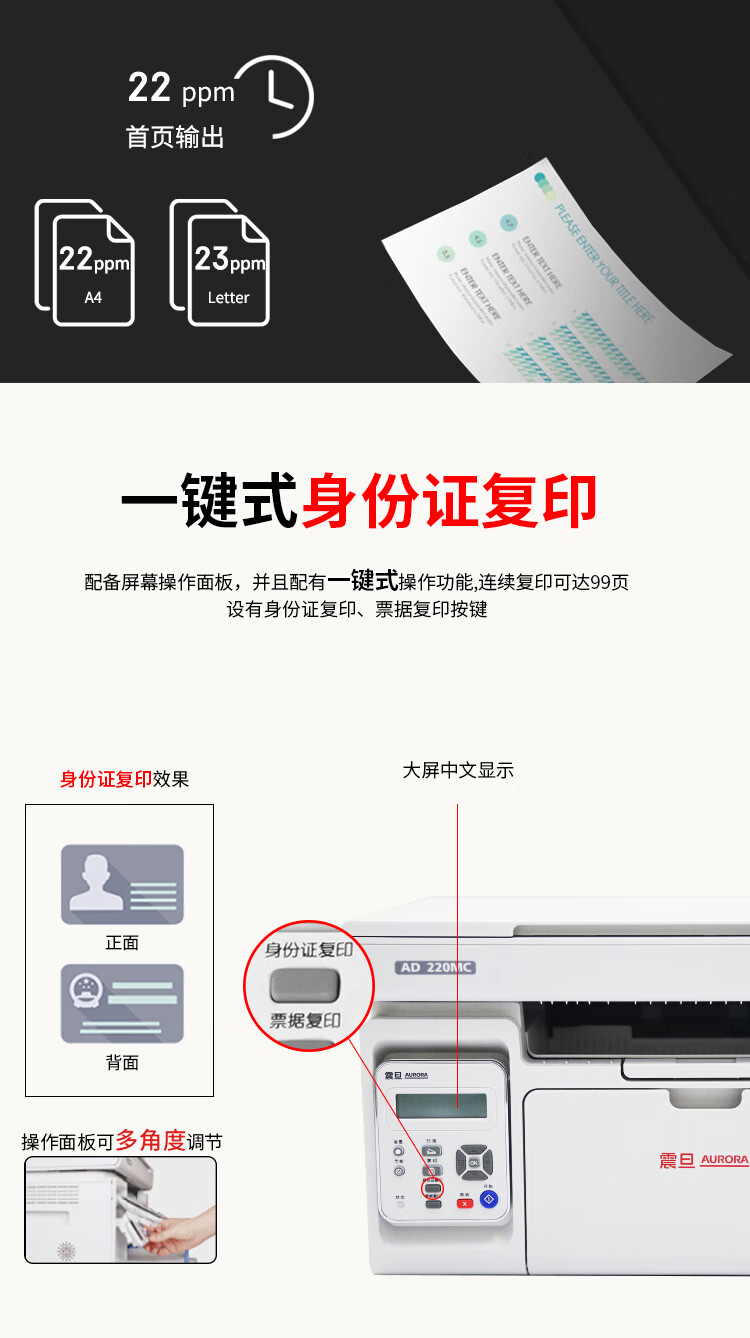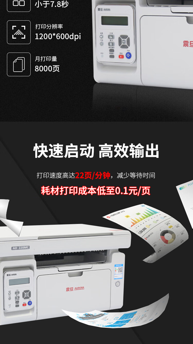 震旦(AURORA)AD220MC黑白激光多功能一体机(复印/打印/扫描)A4打印机(企业版) 自营