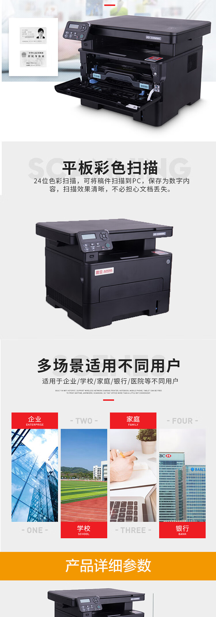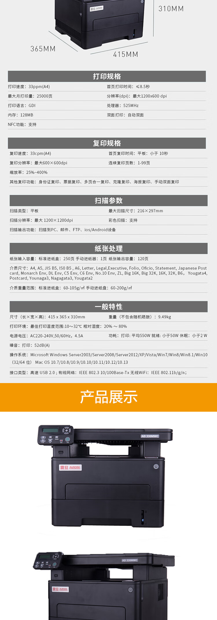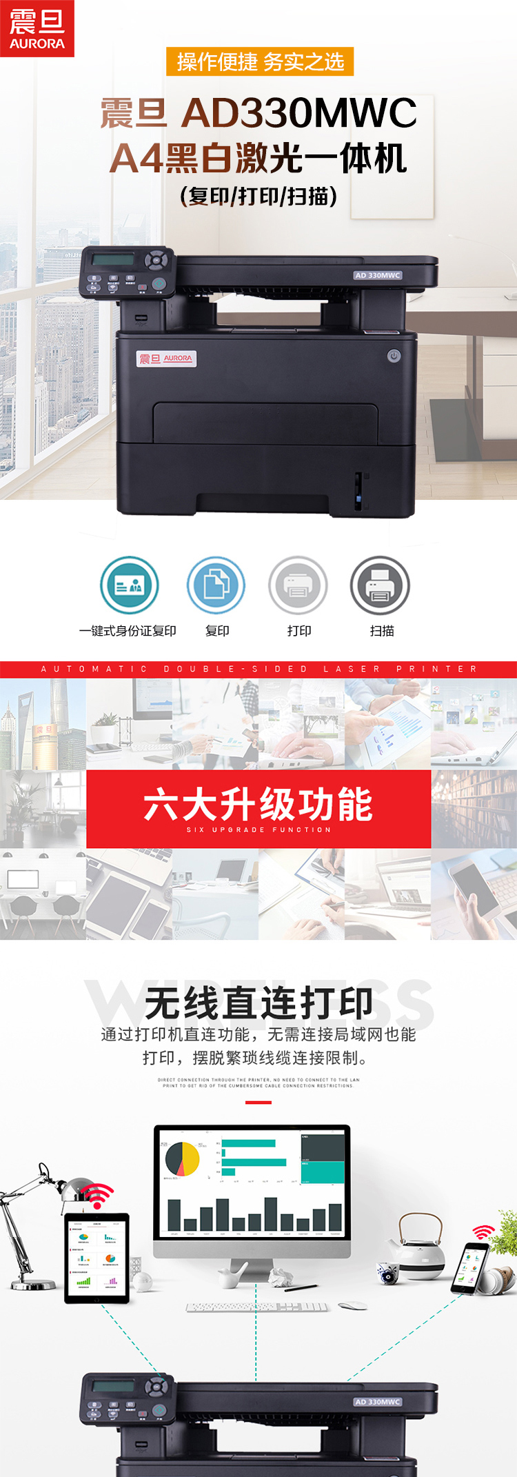 震旦(AURORA)AD330MWC黑白激光一体机(复印/打印/扫描)A4打印机(企业版) 自营