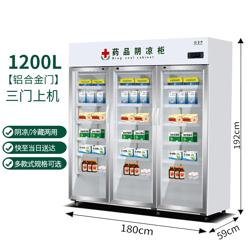 煦雪 阴凉柜gsp认证冷藏柜 智能控温冰箱展示柜 豪华款800L双门铝合金门上机阴凉/冷藏一体机