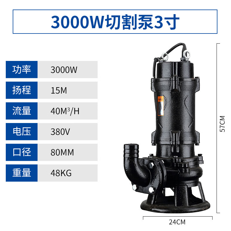 鸣固 切割式污水泵化粪池抽粪家用380V潜水防汛排污泵带绞刀 3000W3寸