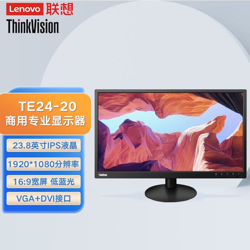 联想(Lenovo)ThinkVision TE24-20 23.8英寸16:9宽屏IPS液晶显示器(VGA+DVI)